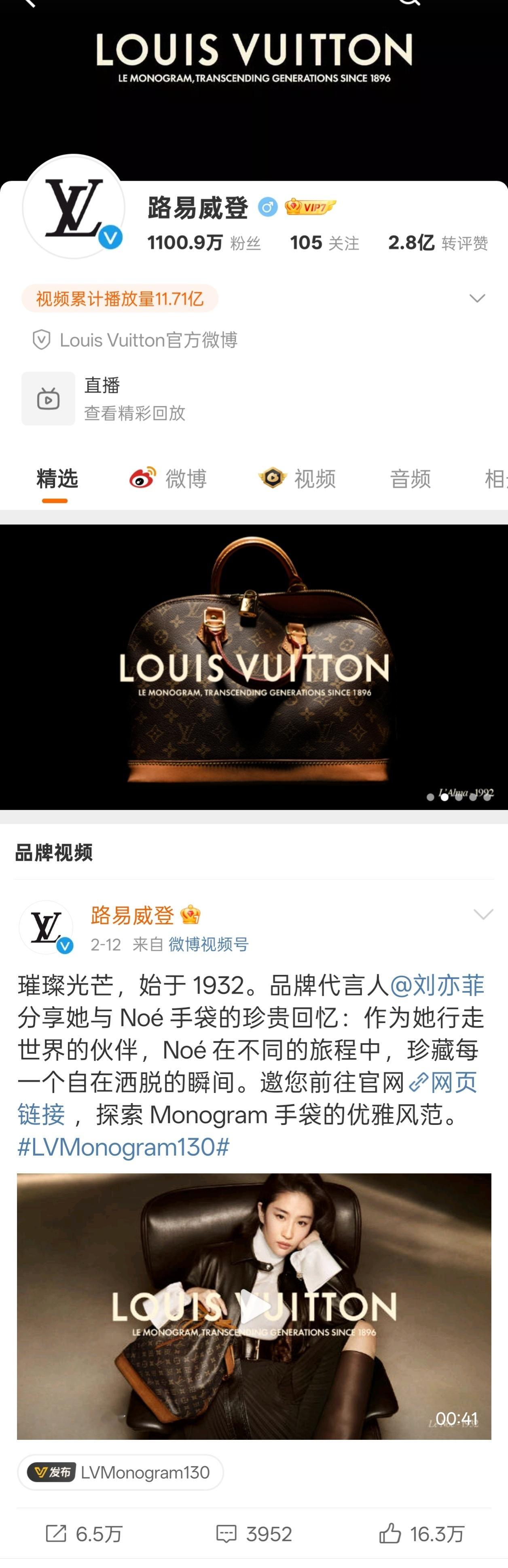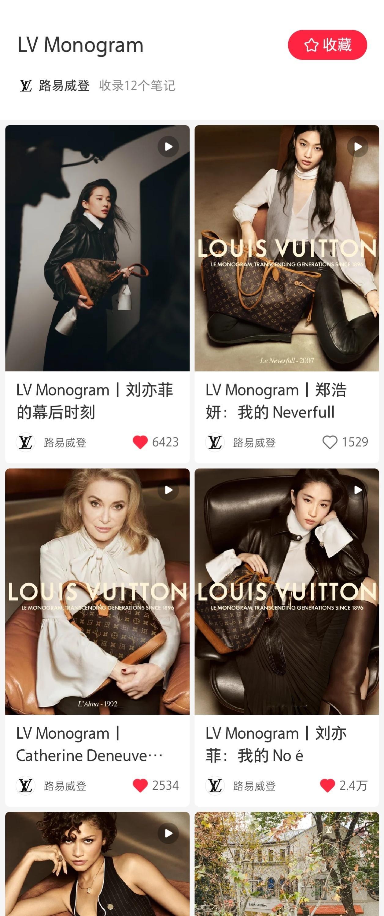 微博精选、小红书LV Monogram词条、抖音搜LV 都能看见刘亦菲