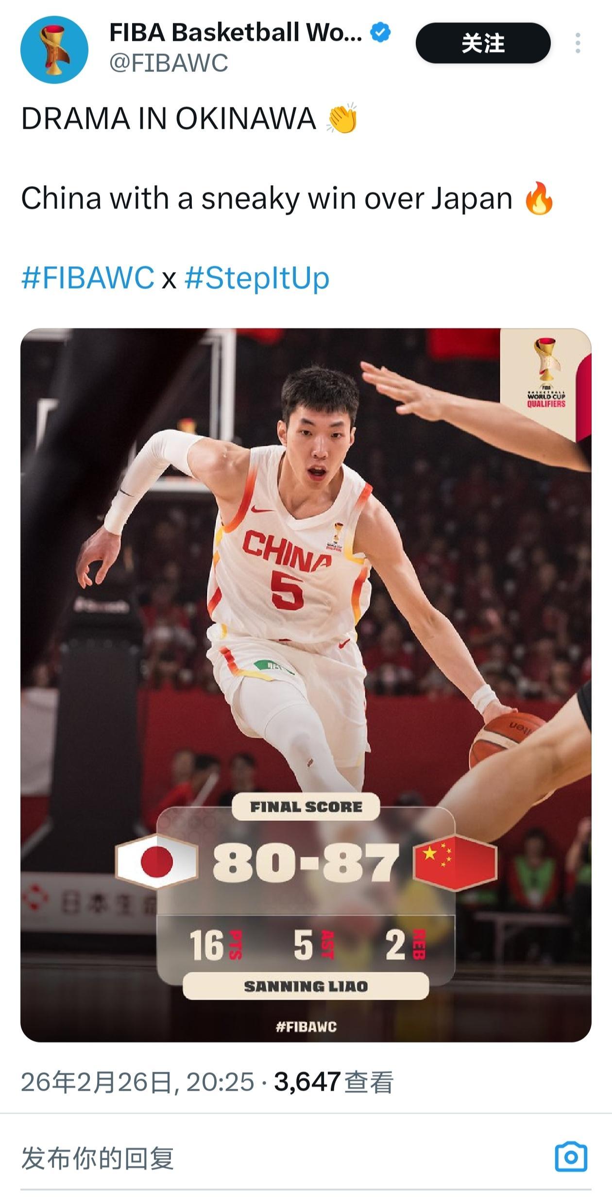 FIBA国际篮联向中国男篮致歉FIBA国际篮联官方今日发布声明,对昨天中国男篮战胜日本男篮的比赛结果措辞不当,向中国男篮、中国球迷致歉。FIBA国际篮联声明内容如下:亲爱的中国篮球球迷朋友们,我们谨向中国国家队、中国球迷以及整个中国篮球界致歉。我们昨晚发布的关于比赛结果的帖子中,所用措辞是不妥的。中国队的胜利是通过自身实力、努力拼搏和决心而赢得的。相关内容已在全平台删除或修正。祝愿中国队在2027国际篮联篮球世界杯预选赛剩余比赛中一切顺利。