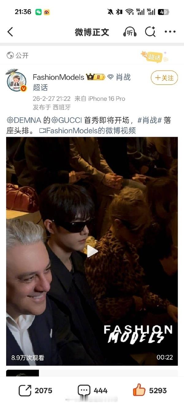 肖战Gucci大秀内场座位旁边是开云集团CEO,已经第四年CEO边上主宾位了Gucci直播 肖战 这很齐夏肖战亮相gucci秀场