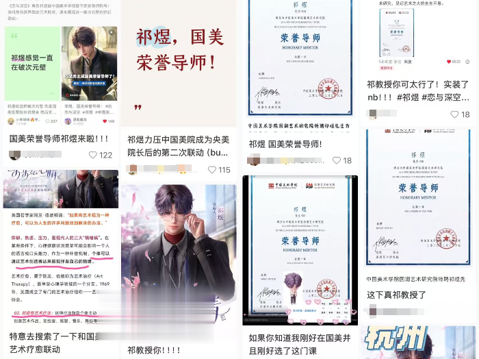 2月27日,中国美术学院国潮艺术研究院正式官宣,聘任热门手游《恋与深空》中的人气角色祁煜担任荣誉导师,这一跨界联动引发了游戏玩家与艺术爱好者的广泛关注,网友表示:“这下是真破次元壁了”。