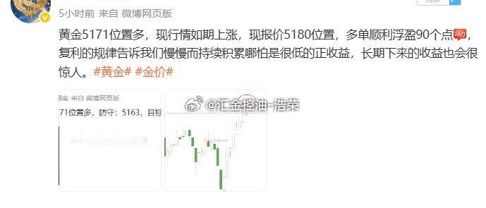 截止目前,4 单全胜,势如破竹!有勇气入场,有定力持有,有章法布局。我们始终稳字当头,步步为营,用实力守住每一份收益。顺风顺水,算不上真正的经历。我的底气,皆来自阅历,在实战中不断沉淀。愿每一位的朋友,都能守得初心,得偿所愿。黄金金价