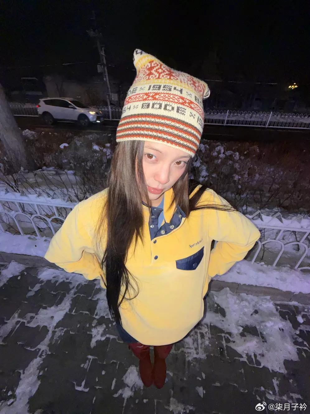 分享娱乐欧阳娜娜雪地甜笑少女感满满 手拿烟花棒灵动俏皮
