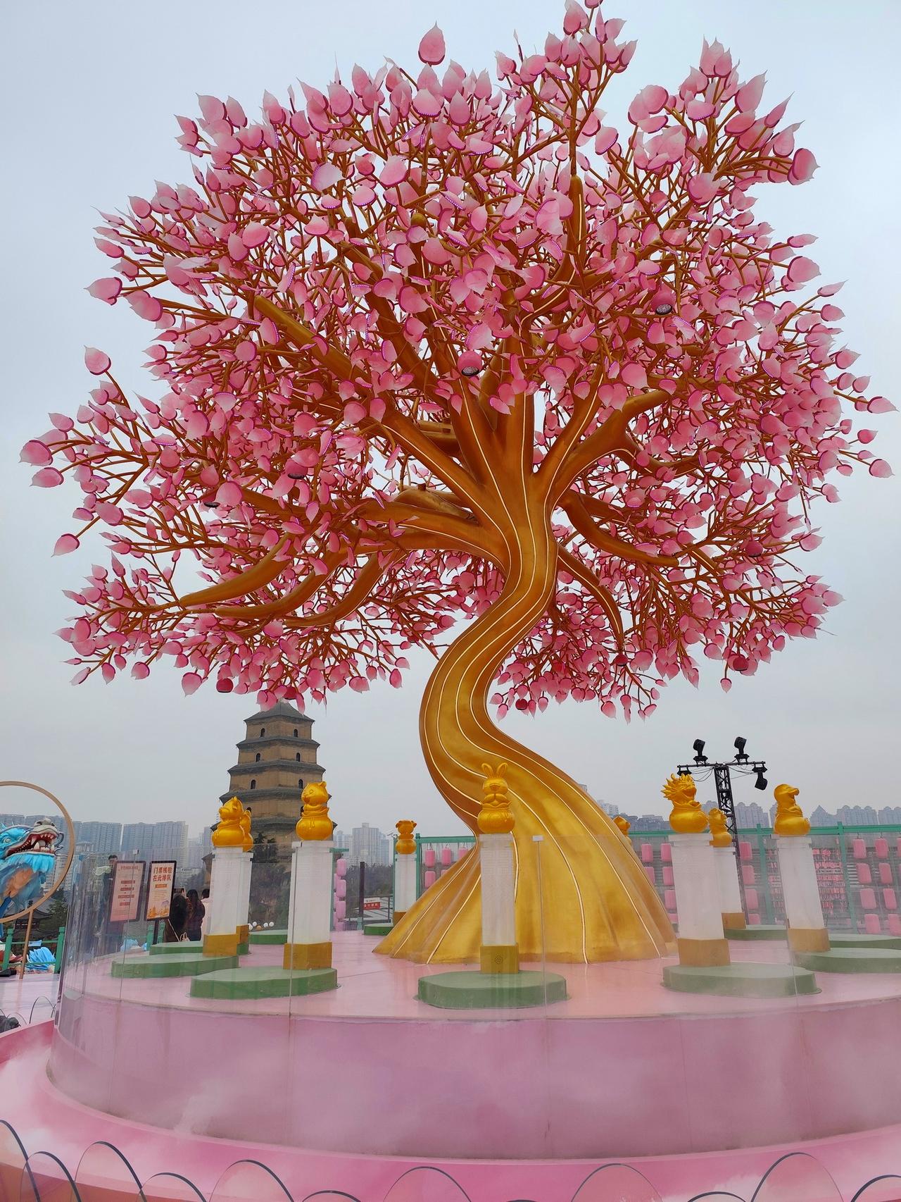 大悦城楼顶超震撼的“长安祈愿台”,不来围观一下吗?西安商场众多,但是能和大雁塔完美结合的只有大悦城,最近在商场楼顶装置的10米巨型仙树真的太绝了!白天仙气飘飘,仿佛置身瑶池仙境;夜幕降临后更是美到炸裂,万叶鎏光,随手一拍都是大片既视感! 背靠千年大雁塔,站在这里祈福,感觉连愿望都变得更加灵验了!现场还有超唯美的 《祈愿长安》舞蹈演艺,舞姿曼妙,一秒穿越回盛世长安,氛围感直接拉满! 最特别的是,这里不只是一个打卡点,更是一次与自己对话的机会。写下你的心愿寄语,在千年古塔的见证下,交换一个更好的明天!10来张张图根本装不下它的美!建议带上家人朋友,亲自来感受这份独属于西安的浪漫与神秘。