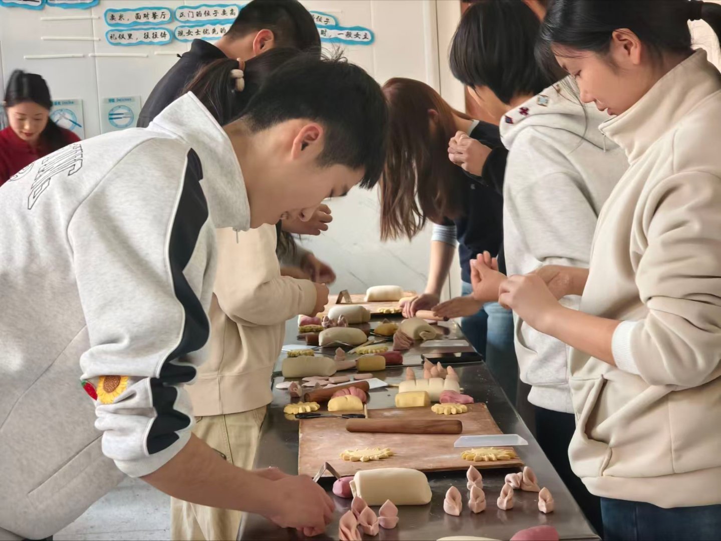 秦岭笑谈 【青春塑花馍,非遗焕新颜】社会实践曲阜师范大学三下乡 近日,曲阜师范大学“指尖万象,馍里有话”实践队近日走进青岛崂山王哥庄花馍工坊,开展为期三天的非遗传承实践。在传承人手把手的指导下,队员们学习了莲花、福袋、双尾鱼等传统花馍造型,从和面、塑形到点缀,每一步都浸润着老手艺的细腻与匠心。在掌握传统技法后,队员们大胆融入青春创意,亲手捏制出章鱼、薯条、刺猬等生动有趣的现代造型。当一笼笼花馍蒸熟出笼,麦香四溢,形态各异的花馍既承载着传统民俗的寓意,也闪烁着年轻一代的巧思与活力。此次活动不仅让青年学子在亲手实践中触摸非遗的温度,更通过古今造型的对话,探索传统手艺在当代的创新表达。队员们以指尖延续文化,以创意激活传承,为非遗融入现代生活、助力乡村振兴注入了青春动能。
