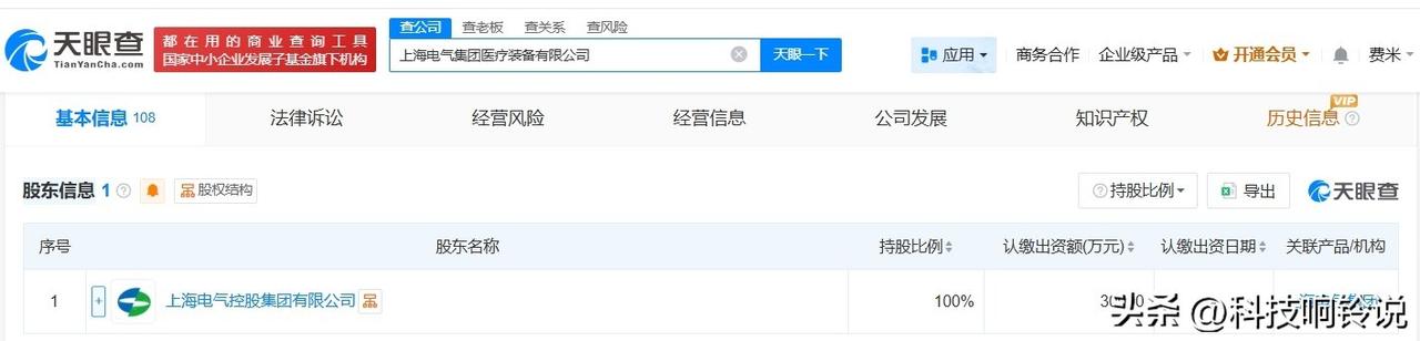 【上海电气集团成立医疗装备公司 注册资本3亿】 天眼查App显示,2月27日,上海电气集团医疗装备有限公司成立,法定代表人为彭勇,注册资本3亿人民币,经营范围含软件开发、医学研究和试验发展、专用设备修理等,由上海电气控股集团有限公司全资持股。 天眼查信息:
