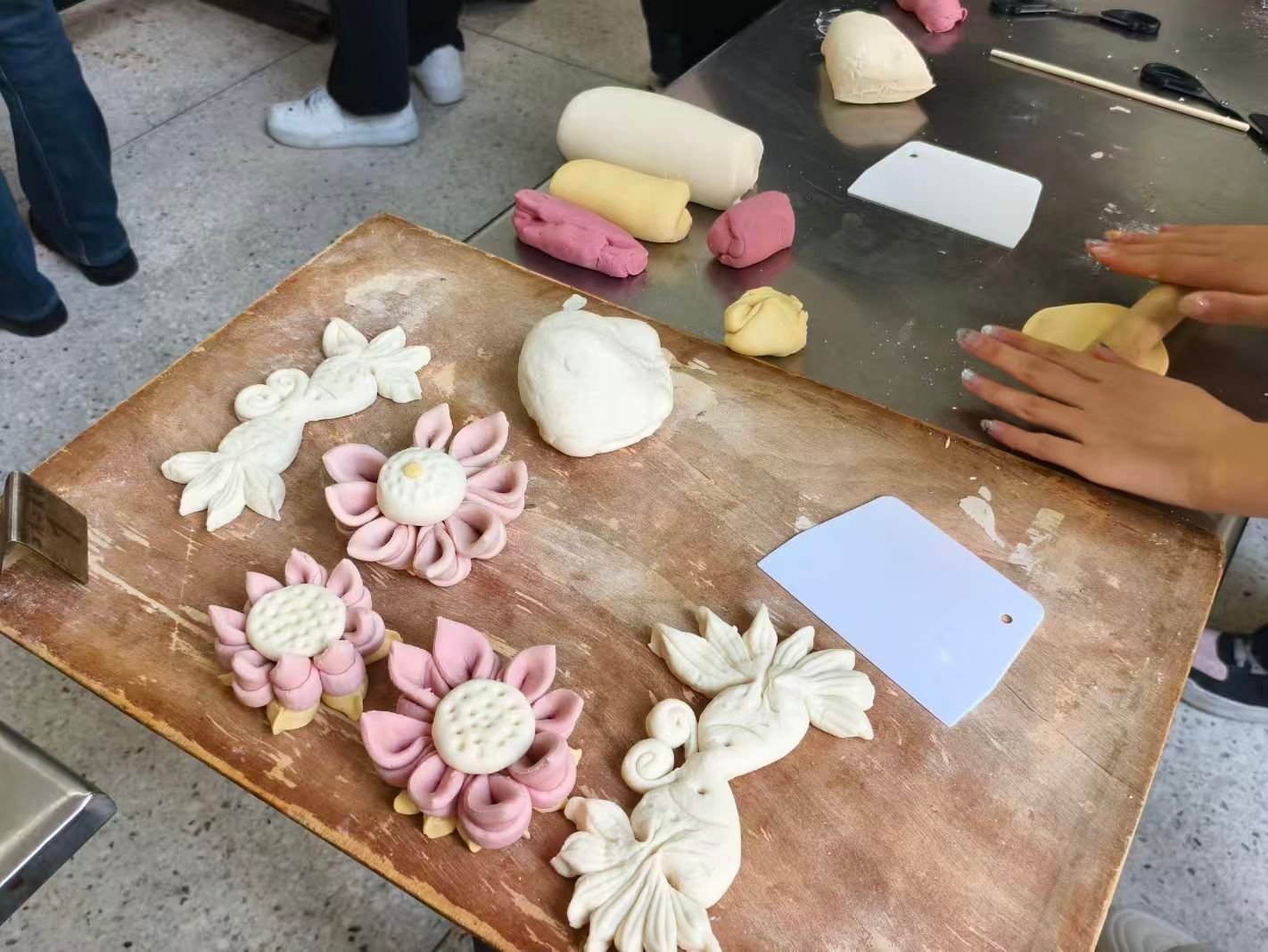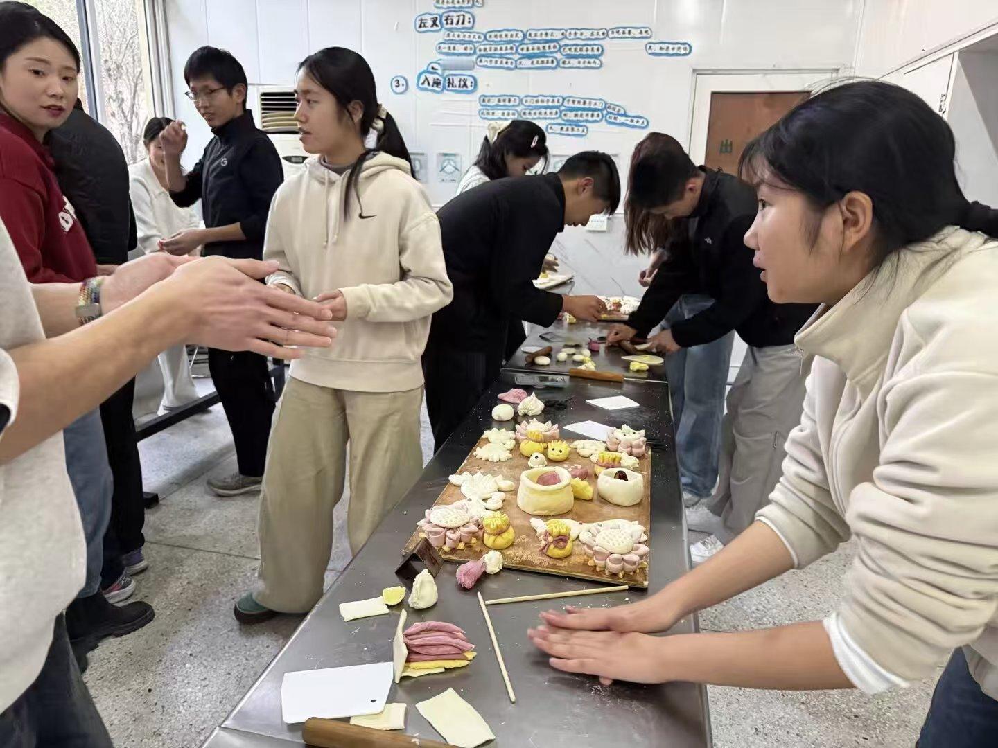 秦岭笑谈 【青春助力非遗传承,实践赋能乡村振兴】社会实践 1月18日,曲阜师范大学“指尖万象,馍里有话”实践队走进青岛崂山王哥庄街道花馍工坊,开启为期三天的非遗文化探寻之旅。实践队成员跟随非遗传承人学习“三光”和面、天然原料上色等技艺,亲手制作莲花、福袋、双尾鱼等传统造型花饽饽。在“和面要揣,不是揉”的耐心教导下,队员们感悟到花饽饽不仅是手艺,更是胶东地区代代相传的生活智慧。随后,队员们发挥创意,自主设计章鱼、薯条、刺猬等趣味造型,并通过蒸制环节见证面团蜕变。蒸汽升腾中,麦香与面香交织,让队员们真切触摸到非遗技艺鲜活的生命力。此次实践以青春力量搭建起高校与乡村的文化桥梁,让胶东花饽饽这一非遗技艺成为乡村振兴的“新引擎”。