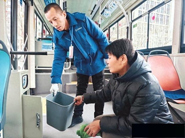妻子史彩萍作为保洁员,天还未亮,就拿起清洁工具,对停车场地面、公交车辆内外进行全面清扫,擦拭座椅、扶手、车窗,清理卫生死角,不放过任何一处细节。为驾驶员营造整洁舒心的工作氛围,为乘客打造干净舒适的乘车环境。