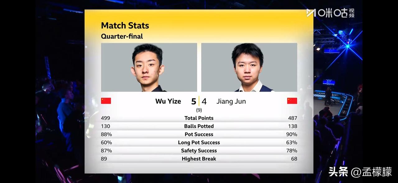 北京时间2月28日讯,2026斯诺克威尔士公开赛8进4轮次的比赛,吴宜泽VS江俊,吴宜泽 1-4落后,83、64、89、77连扳四局,5-4逆转战胜本届黑马江俊,晋级四强,半决赛对阵四强常客霍金斯。 决胜局,江俊37:12时,出现心理波动,进攻黑球出现重大失误,吴宜泽上手清台。 其他1/4决赛比赛,霍金斯5-3萝卜,小司机5-2宾汉姆,周跃龙0-5希金斯。 半决赛对阵: 希金斯🆚小司机 吴宜泽🆚霍金斯 半决赛只要小司机战胜希金斯,小司机就可获得本土系列赛15万英镑额外奖金。 斯诺克 一起聊聊斯诺克 威尔士公开赛周跃龙 希金斯 斯诺克四强