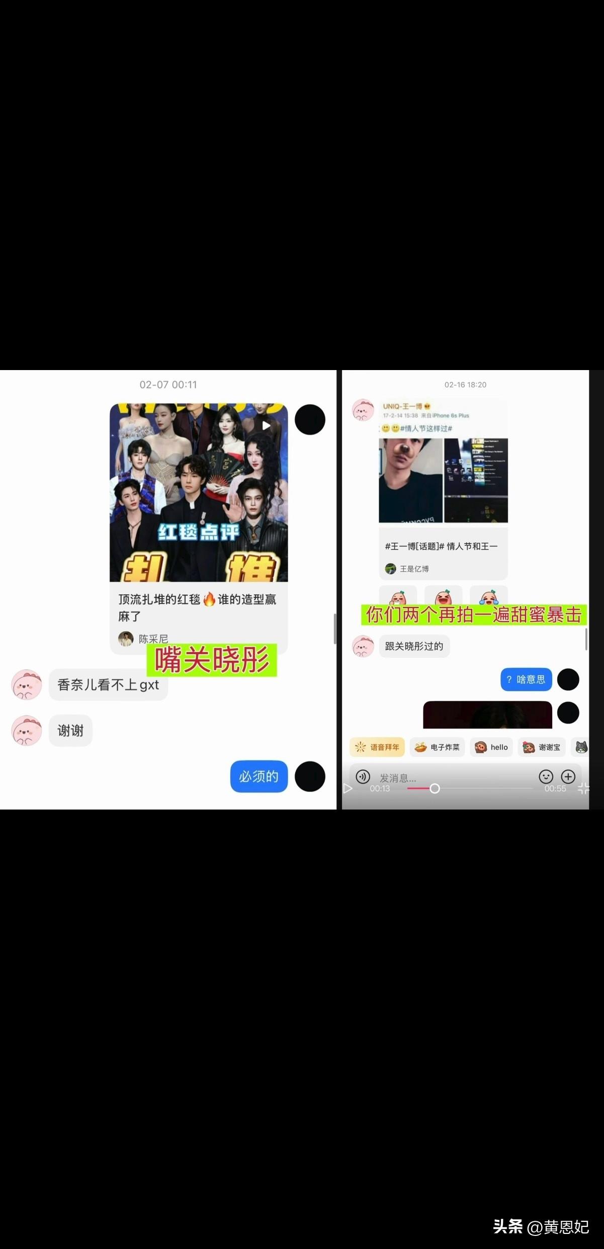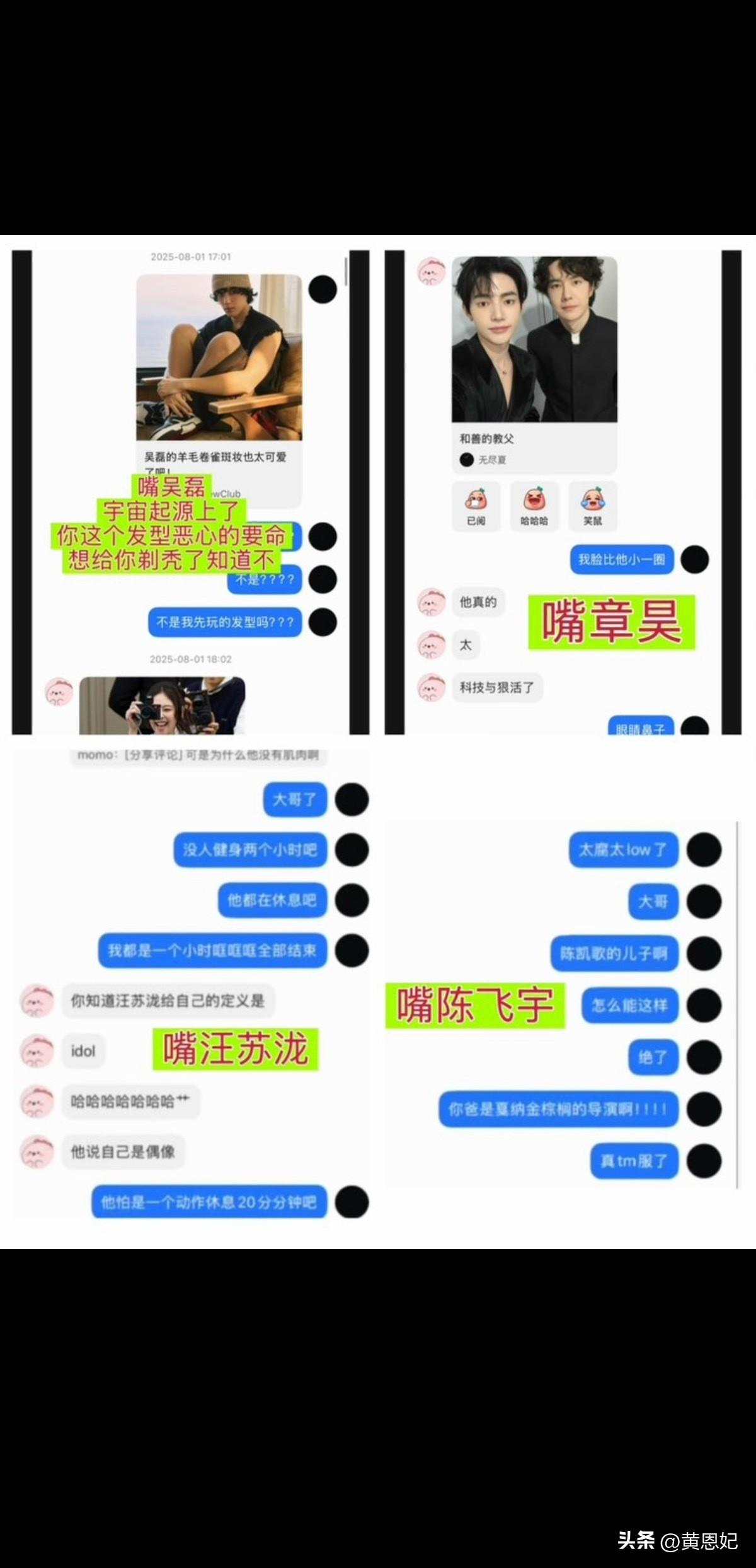 有网友曝疑似王一博綦美合的聊天记录? 这可能吗,王一博一看就是有文化有内涵有素质的人! 怎么可能嘴肖战、吴磊、汪苏泷、鹿晗、蔡徐坤、关晓彤、程潇这么多人?! 现在网络为了黑人无所不用其极!我们要坚决抵制!