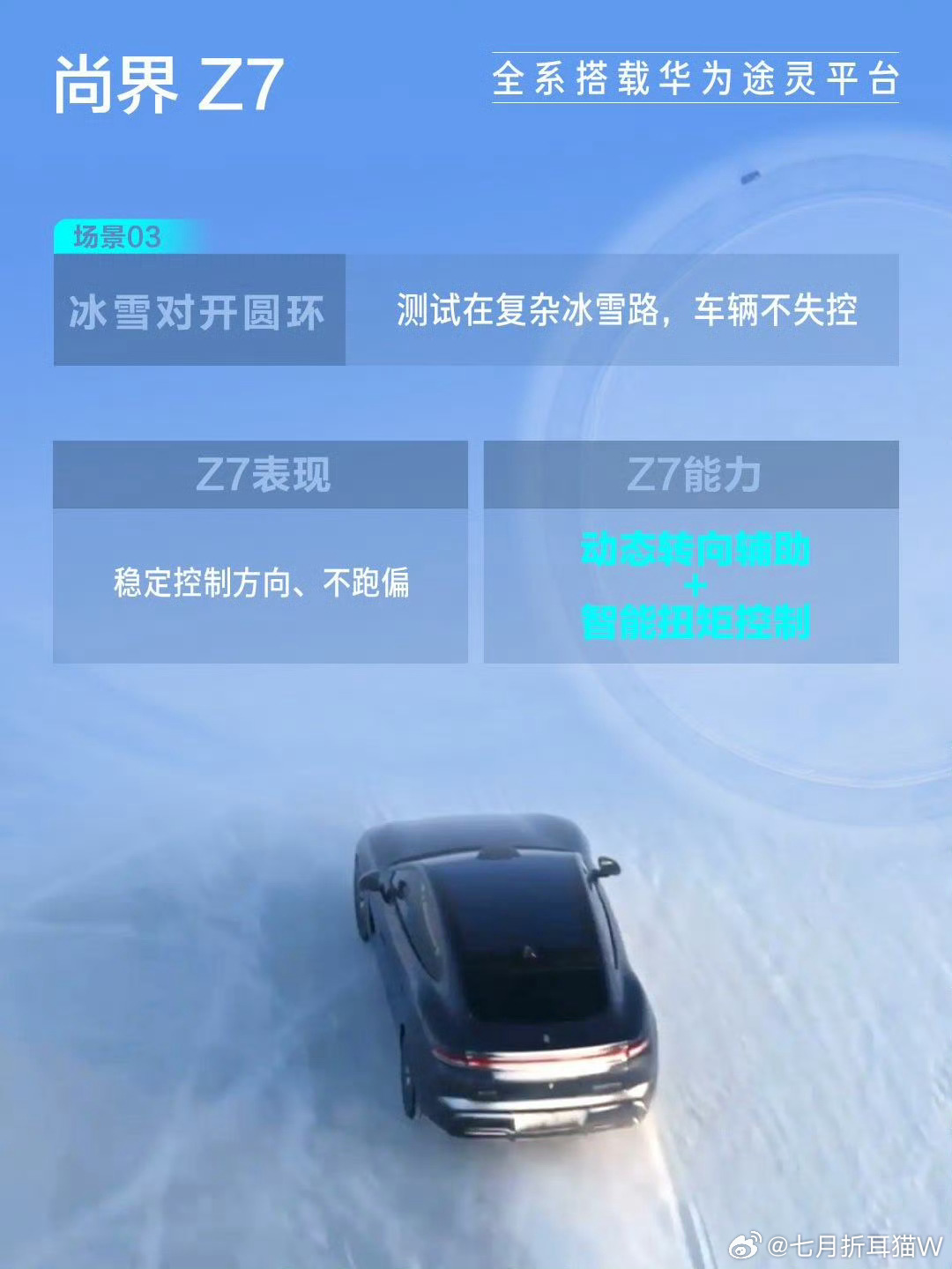 尚界Z7冰雪测试尚界Z7的冬测视频出来了,丝滑的飘移,在雪地中也能稳定的行驶,而