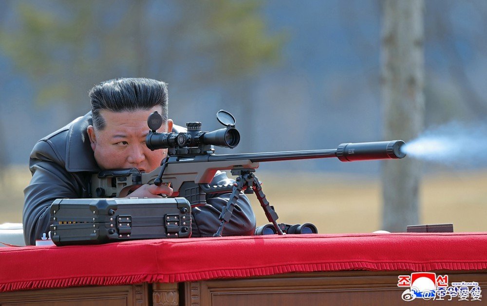 将军向主要领导干部和军事指挥员赠送礼物(新型狙击步枪)(图一 图二)将军亲自试射