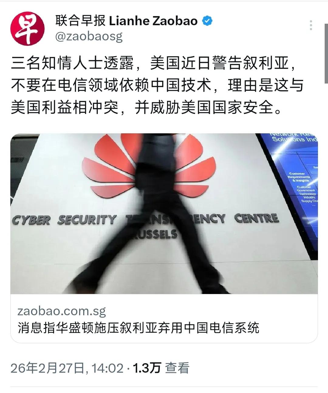 联合早报2月27日报道:“三名知情人士透露,美国近日警告叙利亚不要在电信领域依赖中国技术,理由这与美国利益相冲突,并威胁美国国家安全。” 特朗普嘴上喊跟中国关系很好,期待访问中国寻求合作,私底下却以“美国国家安全”为由警告叙利亚不要用中国电信。这已经是不光在美国国内打压中国企业发展,而且是明目张胆的把手伸到第三国去打压中国企业,这种无理干涉中叙之间正常的商业行为,突显出美国的霸权主义。 然而,美国所谓为“美国的国家安全”是往往要霸道的建立在别国不安全的基础上。美国在全球范围内进行大规模网络窃密的事实早已不是秘密,比如德国总理默克尔的手机被监听,巴西总统通讯被监控,连联合国都未能幸免,美国已经是名副其实的“黑客帝国”、“窃密帝国”。美国之所以反对中国电信设备,也许因为用中国独立于美国技术的电信设备后,美国将无法进行非法监控活动。这就是所谓威胁到美国“国家安全”的本质,显然是建立在别国不安全的基础上。 其实,据露透社报道,当前中国在叙利亚电信基础施设(注:主要以华为为主)占比超过50%,很多也是在美西方国家对阿萨德政权实施制裁期间建立起来的。美国现在对叙利亚刚解除制裁就想急着对中企下手,可显示出美国的霸权作风不可能轻易让中国发展起来。然而,美国常常干出损害他国利益以维护自身利益。从叙利亚并未接受美国警告,并表态称坚持基于国家利益和技术现实作出自主决策,这相信叙利亚当局应该清醒认识到谁在偷数据,谁在真正搞基础设施建设,以服务于叙利亚人民的利益。