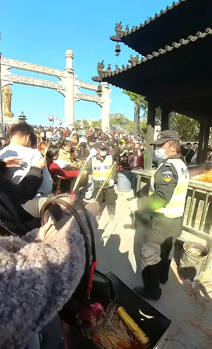 要说祭神、祭祖先,最诚心的地方,广东佛山可能算全国第一了。 这儿的人,不但平时是天天烧香敬神,在重大节日祭神祭祖更是隆重虔诚。 特别是在祭品的供奉上,更是丰盛多样,从肉食到水果,还有蔬菜,甚至还有调料,比如葱。 相比于我们北方人——湖北恩施人的祭祖方式,那真是一桌浑素搭配的盛宴。 我们恩施人的祭祖,几百年来的祭品就只有猪头(一整只)、米饭,几片豆腐,和两小杯白酒。 这样的贡品,只有在除夕那天才有,其他节日也就一坨煮熟的五花肉。 什么水果蔬菜从来就没上过贡桌,这大概就是北方人粗圹简洁的生活方式造成的。 国人借敬佛来求升官发财的思想,千百年来都没有改变。 就算到了这个时代,一切鬼神都可以说不相信的时代,可是佛祖和菩萨的宗教文化依然是根深叶茂。 你看下图这几张截图,这种敬佛烧香都失去了应有的程序和礼仪,但这蜂涌的人群却可以说明一切。