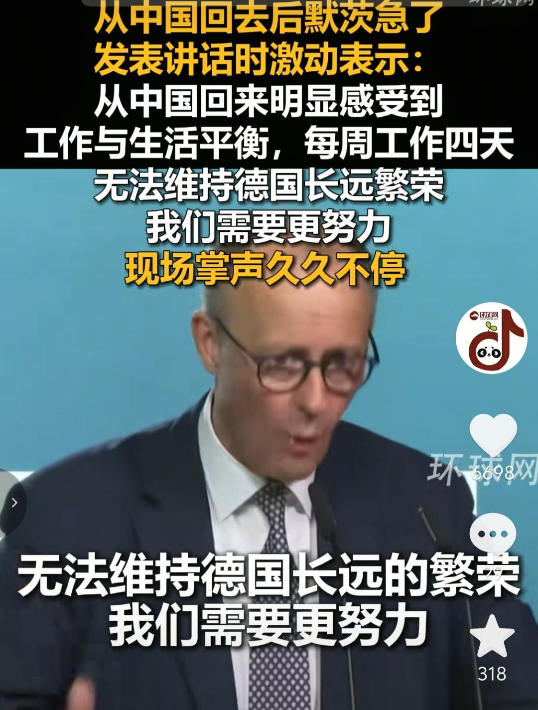 德国总理默茨从中国回去急了,他说,我们现在的生产力已经远远不够,每周工作四天,无法维持德国长远的繁荣,我们需要更加的努力。 默茨是被中国人的工作时间和工作效率给惊呆了。 话说,要是德国人也像中国人那样去卷的话,德国就更加留不住人了,因为德国是发达国家,他们已经习惯了每周的假期生活了,让他们多工作一天,那就是对他们的折磨。要想短时间改变他们的工作习惯,那是不可能的。默茨也就只能喊喊话,下面配合不配合,他也管不着。德国其实可以引进劳动力,让更多的劳动力去德国工作,那样生产力自然就提高了。