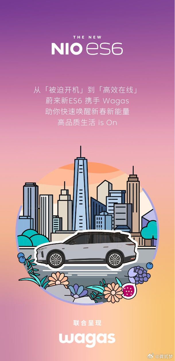 还有就是这次的联名选了新ES6,调性挺搭的,这台车一直就主打“品质⽣活家”,你想一下,中午吃个Wagas,然后在新ES6午休一会,开⼯状态这不就回来了。
