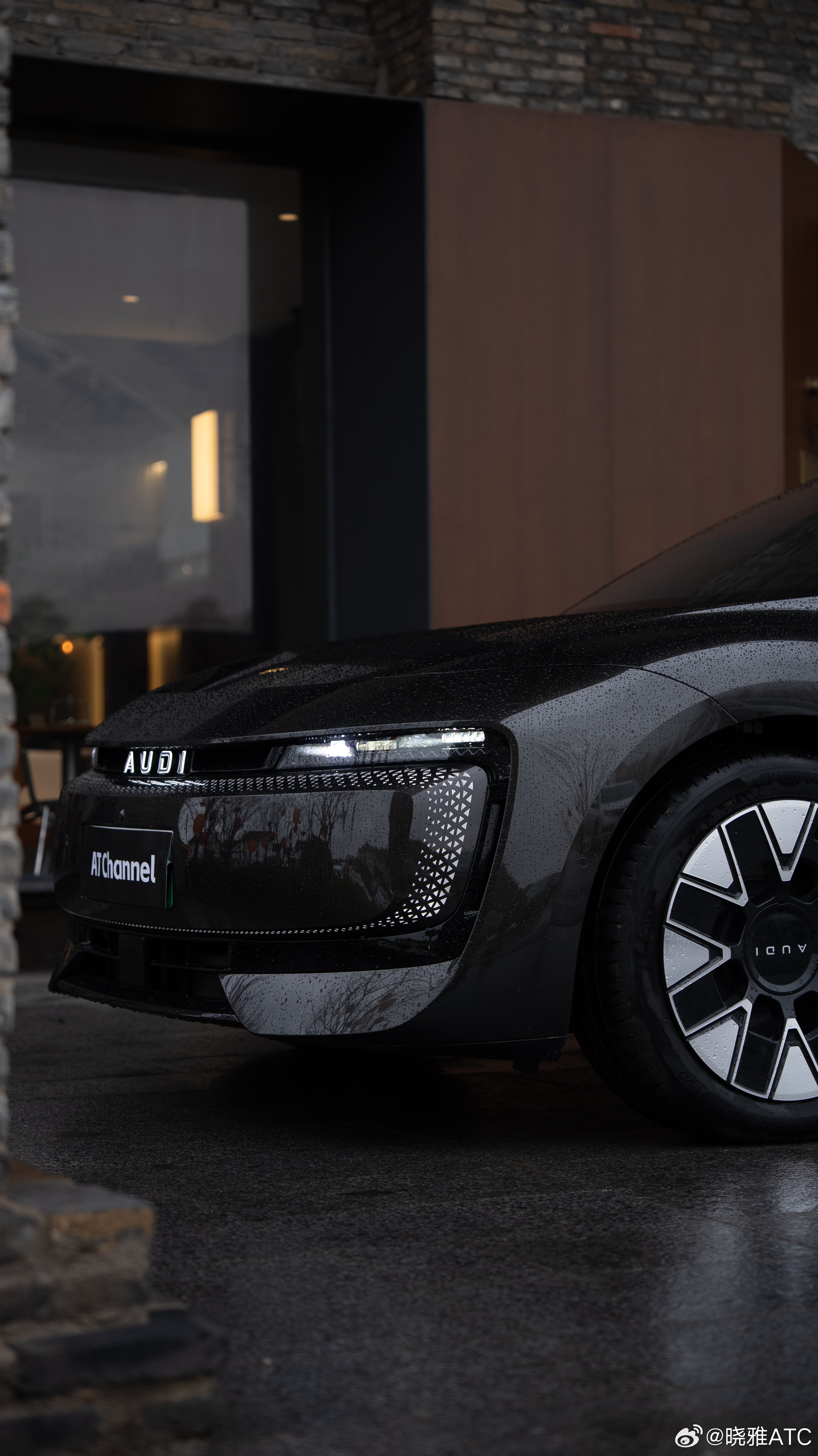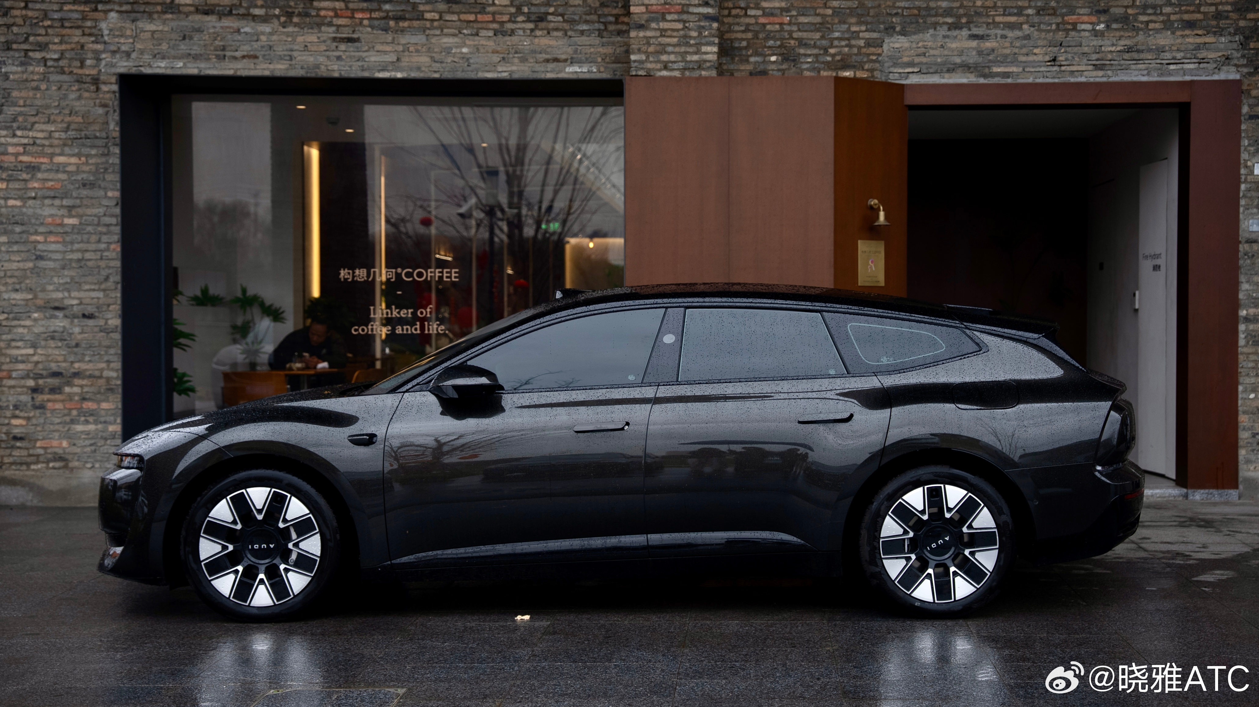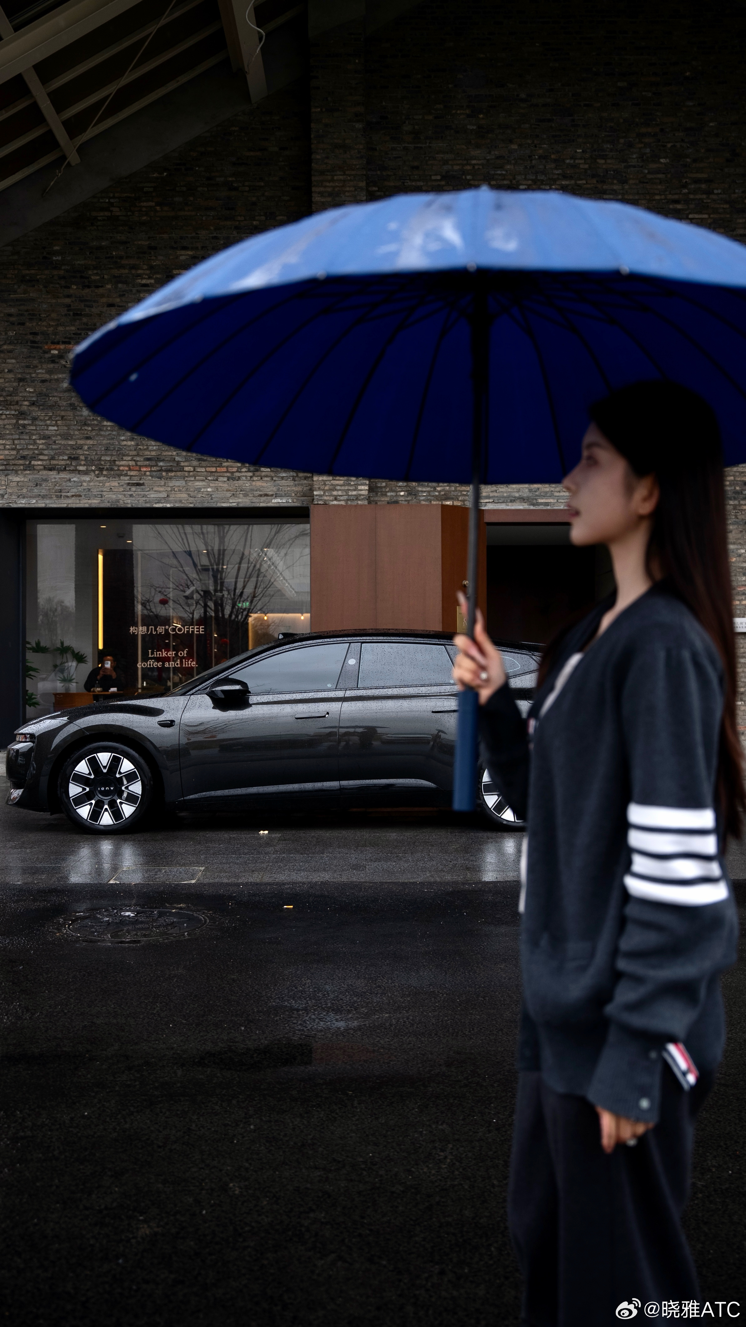 停下车,撑着伞站在一旁,看着雨滴顺着流畅的车身线条慢慢滑下,在溜背的车尾汇聚成细流,优雅地滴落。前格栅上的“AUDI”字母在水光里闪着光,科技的精致和雨天的诗意,就这样在我眼前融在了一起。