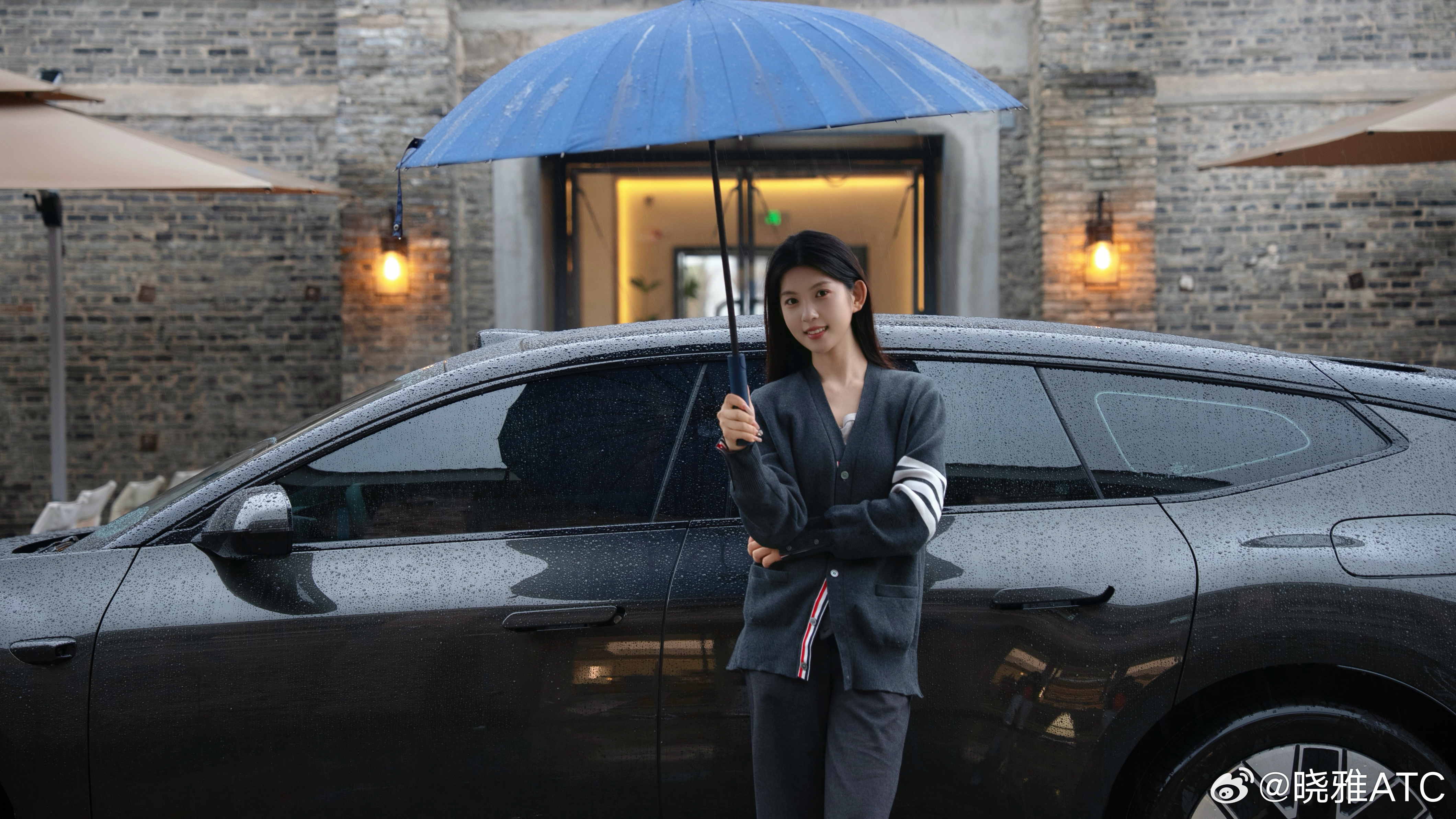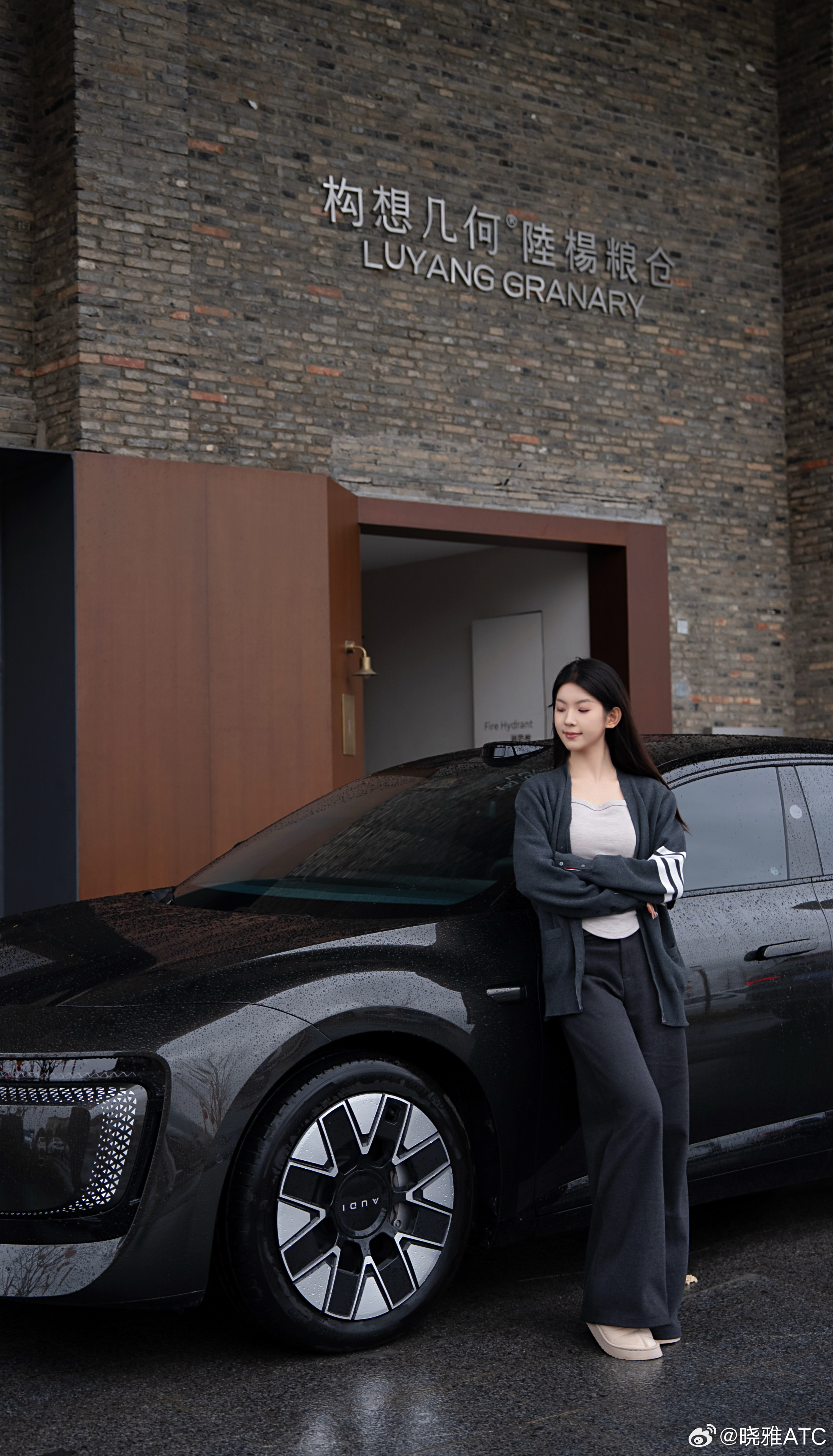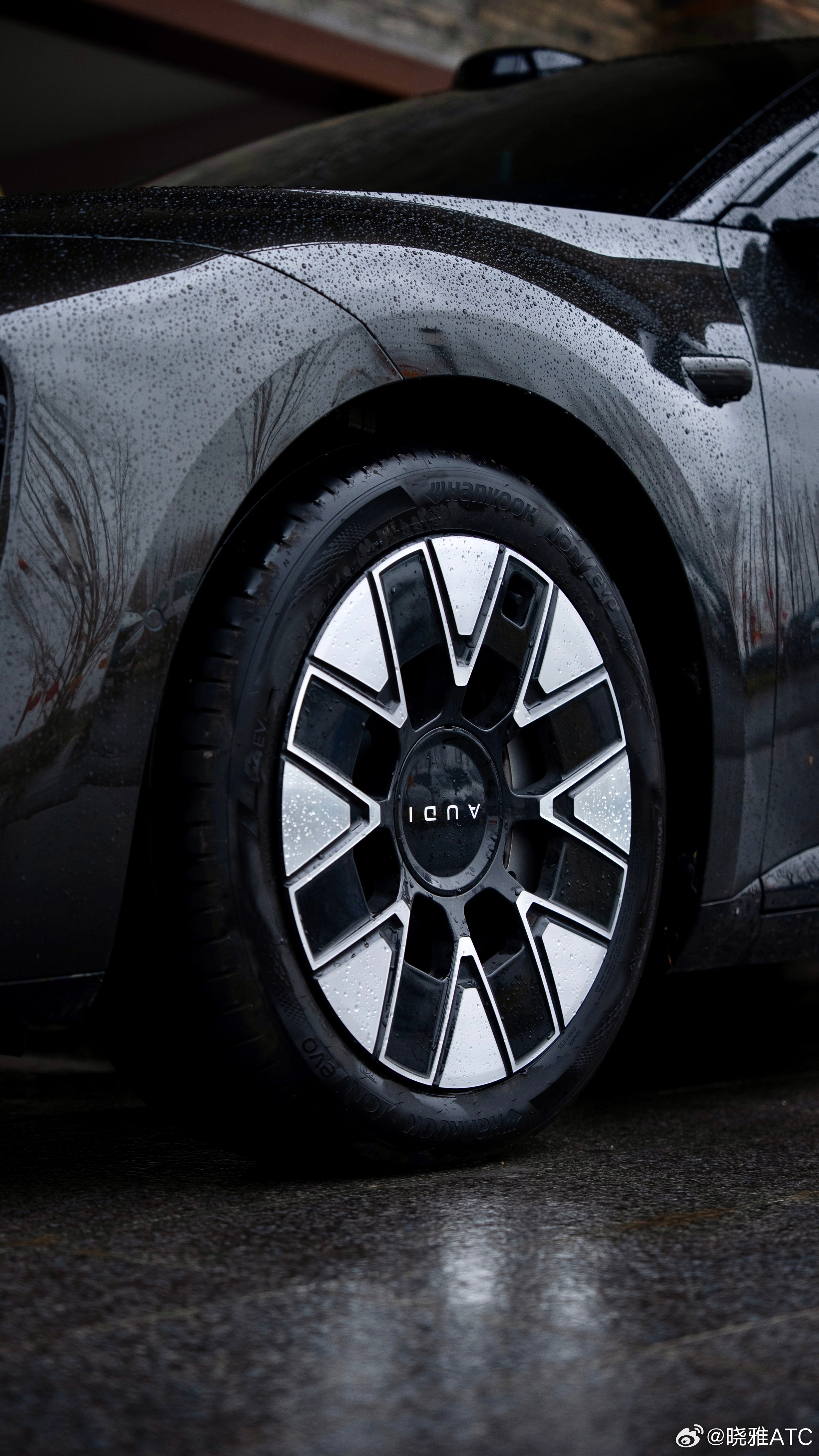停下车,撑着伞站在一旁,看着雨滴顺着流畅的车身线条慢慢滑下,在溜背的车尾汇聚成细流,优雅地滴落。前格栅上的“AUDI”字母在水光里闪着光,科技的精致和雨天的诗意,就这样在我眼前融在了一起。