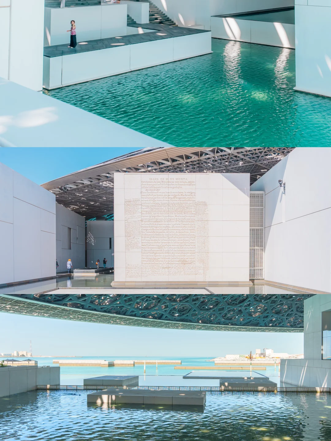 ✔️海上卢浮宫:整个建筑跟简约时尚,当光影从镂空穹顶投射下来的时候,美到失语