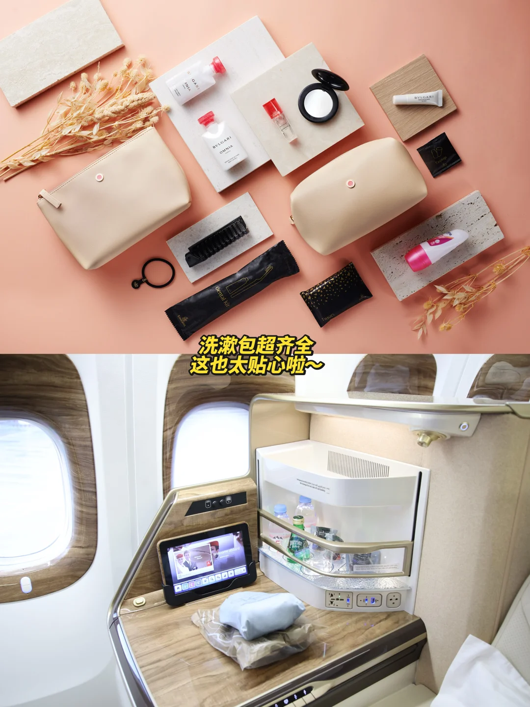 ✔️夜晚的星空顶陪伴入眠,长途过夜航班的洗漱用品是宝格丽的,品质拉满~