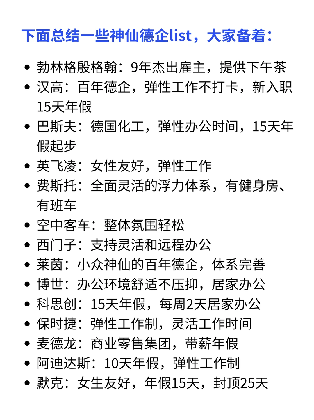 🔶下面总结一些神仙德企list,大家备着: