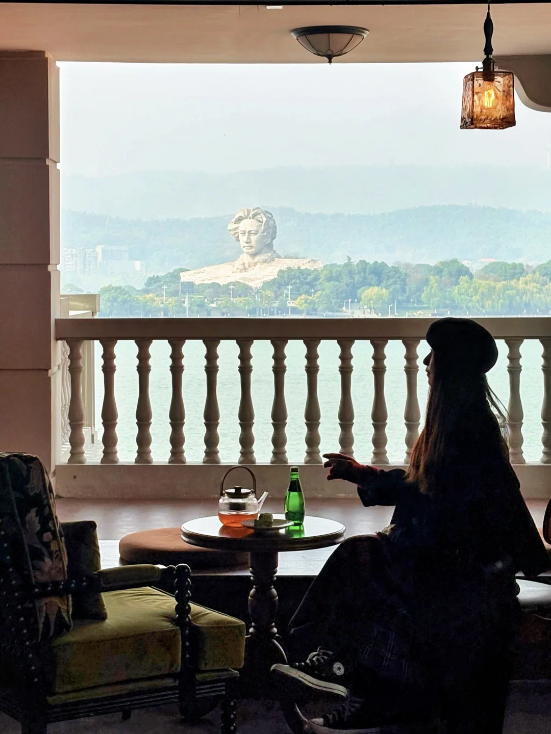 雕像处人会很多,想要避开人群,可以走到望江亭处,以走廊为画框🖼️拍摄