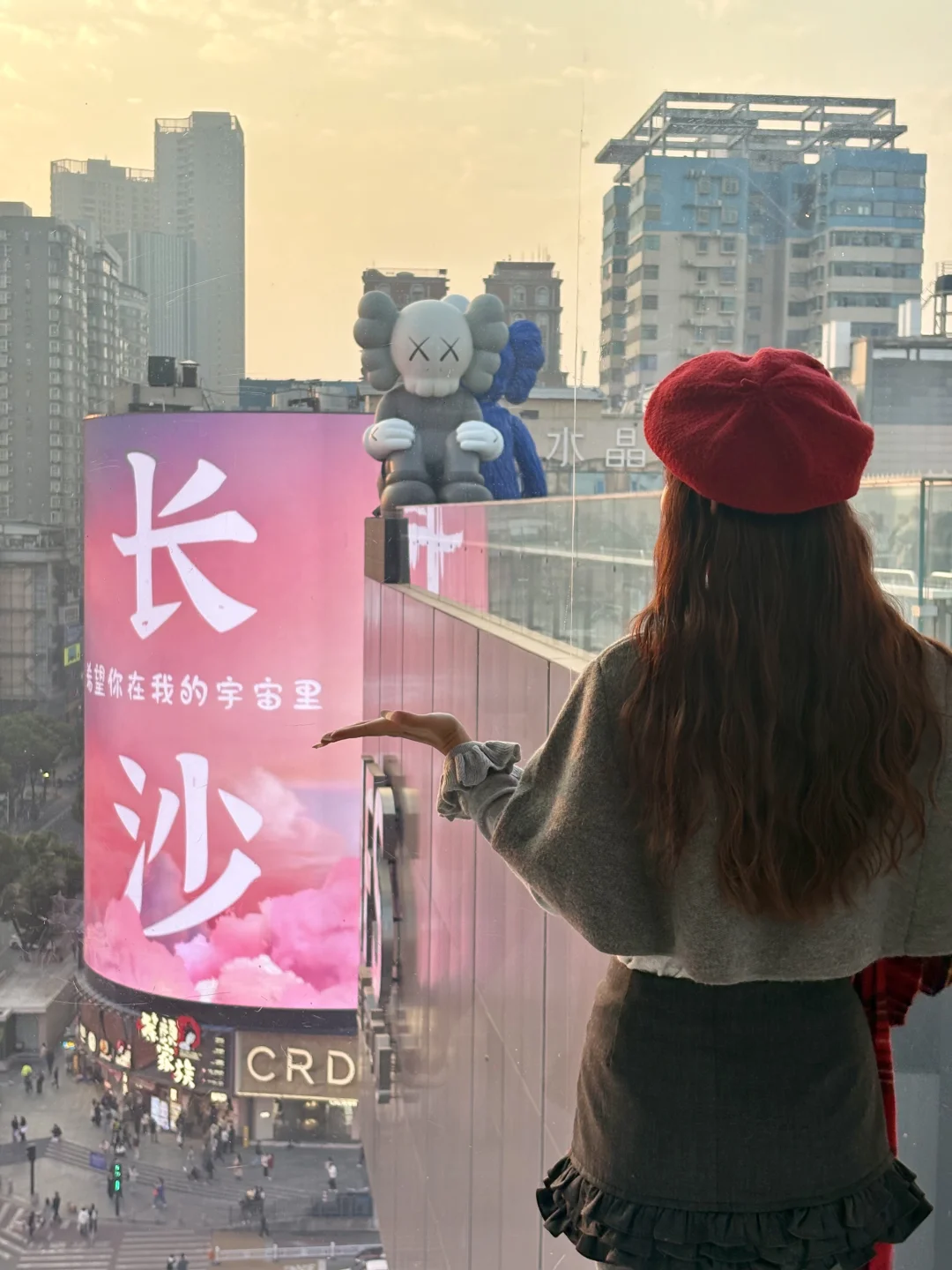 可以拍到粉色的长沙大屏,很梦幻
