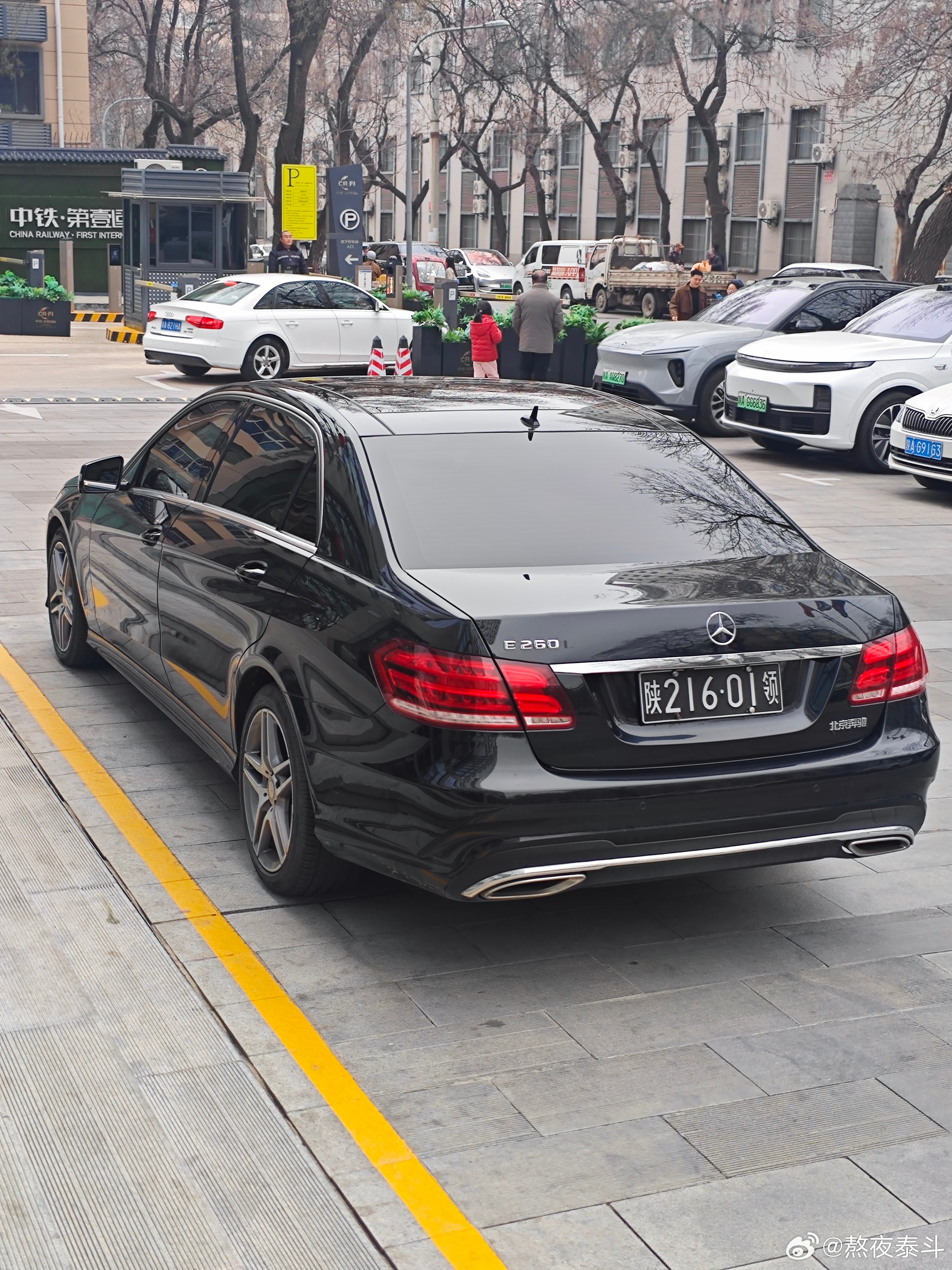 泰国驻西安总领事馆门口的奔驰E260L,2015款运动豪华款,有最少十年历史了,还是挺简朴的。