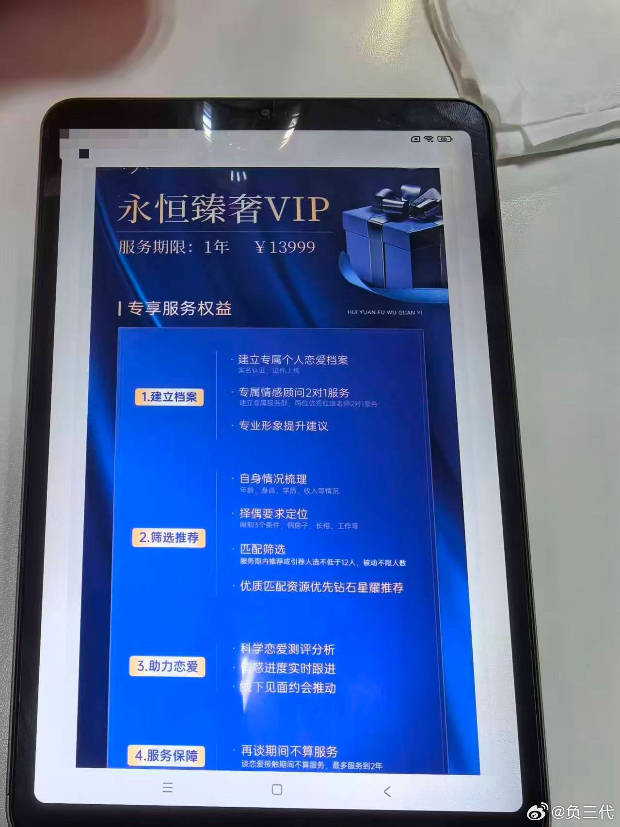 相亲两三年都没成功的同事,媒婆中介推荐他办个恋爱套餐VIP,分两个版本,一个9888元,另一个13999元,现在干媒婆这么赚吗?