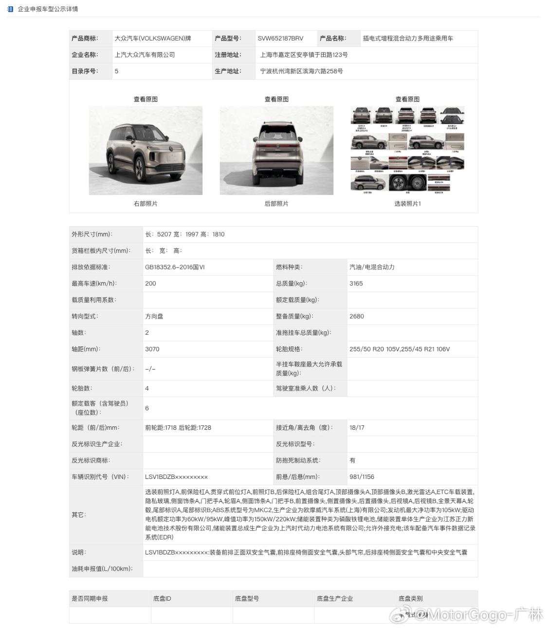 定位尺寸:长宽高 5207×1997×1810mm,轴距 3070mm,2+2+2大六座