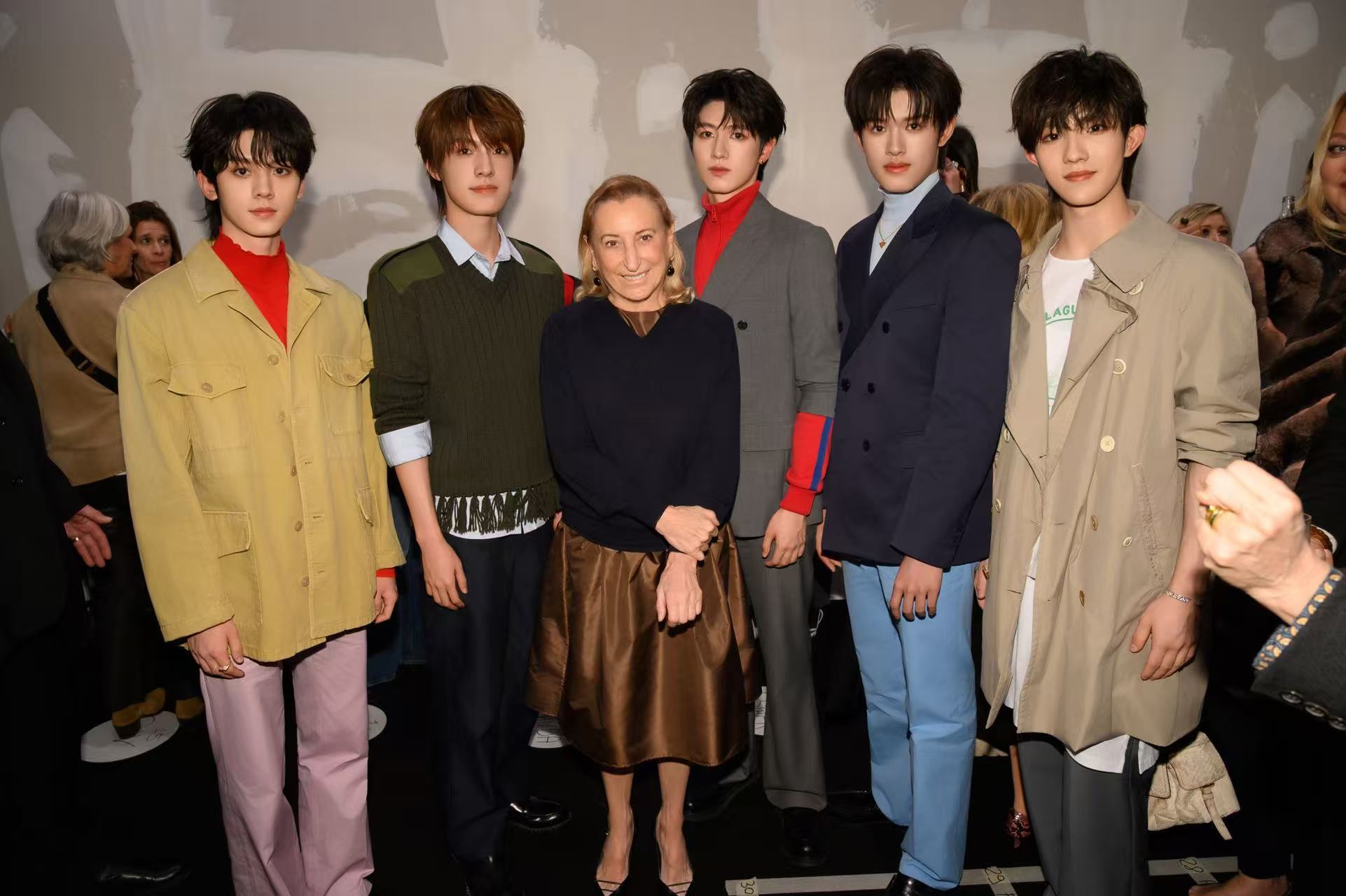 杨幂 Top登陆少年与Prada设计师合影