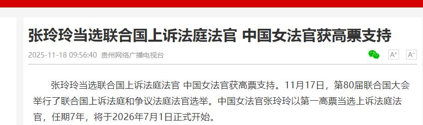 联合国正式向世界宣告:成功当选联合国上诉法庭法官的中国女法官张玲玲,将于2026年7月1日正式履职,任期7年。 全国法律圈都在热议这件事。 很多人说,在中国大步走向世界,在国际法律舞台上拥有越来越多的话语权,这样的高光时刻真的少不了像张玲玲这样的专业和事业型女法官。 如果说,上一位中国人能在联合国上诉法庭担纲法官的,是高晓力;那么现在张玲玲的名字,再一次被写进了世界法律史。 这不是一般的国际舞台,不是小打小闹,可以说,这是世界范围内司法界最有分量之一的位置,一共就七个人,整个法庭在纽约联合国总部办公。 而此次选举中,张玲玲可是唯一亚太地区的代表,是被联合国内部司法理事会亲自推荐的,最终在第八十届联大上成为最高票当选的法官,这重磅程度可见一斑。 说真的,大家平常刷到这些国际组织高官,多多少少有距离感。 可一说起张玲玲,尤其山东日照人,44岁,日照一中1997级校友,这亲切感一下子拉近了。 谁能想到,从山东财经大学学英语,到北大法律硕士,再到香港城大的普通法硕士、人大知识产权法博士、社科院法学所/最高法应用法学所博士后,学业一路开挂,专业跨度极大。 其实最硬的不是学历,是她真正把国际化和本土化结合得非常好。 你很难想象,她既能用流利英文学术讨论,还能严谨地给出法律判决意见。 大家在网上最熟悉她的,应该就是那起轰动全国“琼瑶诉于正案”了吧。 那场著作权案堪称内娱影视行业普法范本,张玲玲就是主审法官团队的重要成员。 把著作权法、影视剧创作、行业潜规则都掰开揉碎讲明白了。 不仅仅是判决本身,更重要的是,这个判决所带来的行业风向,谁还敢明目张胆拿别人的创意打擦边球? 国内很多编剧、导演都对她的司法态度和判决水准印象极深。 其实,像琼瑶这个案子,张玲玲公开说过一句让大家印象很深的话:“法律的理性,是保护创作者的最大温度。” 当时她还亲自参与了《琼瑶诉于正案审理思路》这本专著的合著,就事论理,兼顾法律原则和实际效果,这种平衡真不是一般人能做到的。 而现实中,张玲玲的司法生涯完全配得上这份荣耀。 十五年法官经历,从北京市二中院到北京市高院到现在的最高人民法院,她审理过的案子真不是几十几百起可以概括的,是数千起案件。 不夸张地说,她像一台高效无误的精密仪器,始终保持极高的专业自律和司法独立。 她一直是最高法民三庭的三级高级法官兼审判员,在知识产权、民商事案件方面几乎成了业内公认的“定海神针”。 更难得的是,她并不是只坐冷板凳审案子,还在大量司法解释的起草和修改中有核心发言权,甚至有“执行力强,理论功底也硬”这样的行业评价。 就拿她发表的学术论文和专著来说,一般人累死也很难做到,张玲玲已经写下60多篇有影响力的法学论文和著作,每一篇都不是那种空洞的学术八股,内容和司法实践紧紧相扣。 比如她写的关于知识产权司法保护、影视行业版权纠纷的文章,很多内容直接被列入了法官培训读本和司法解释素材库。 正是这种理论和实践的深度结合,让她在法官群体中有极高的认可度。 这次能获联合国上诉法庭如此重量级的法官职位,背后的程序和竞争也是异常激烈。 这里面还有点典型的国际组织“竞赛”意味。大家知道,联合国上诉法庭是根据62/228号决议于2009年成立,本质上等于是联合国内部司法系统最高审级机构。 全世界一共就七个法官,都驻纽约联合国总部。 每一个选出来都是万分之一的人才。 张玲玲是在联合国内部严格推荐后获得参选资格的,也是第80届联大8名候选人中唯一一名亚太地区代表。 先不说联合国对学术和司法实践的极高标准,能在“六委”议题阶段被各国代表支持推广,最终以第一高票当选,这样的过程说明了我国司法界在全球的公信力和影响力都得到了质的提升。 李白说“长风破浪会有时,直挂云帆济沧海”,张玲玲就是我们中国女性法官中的“云帆”,一步步把我国法律职业精神和形象远扬世界。 从个人层面来看,这不仅仅是职场晋升那么简单,更是一种国际认可的职业成就。 说白了,能把中国法律人的底气和能力展示到联合国这样的平台,成为全世界上诉法庭法官,足见她国际视野和业务能力都是顶级水准。 而且,中国女性法官的知识结构和实务能力在联合国外部法官圈里,可以说都很有标杆意义。 参考:中华网·新闻—— 张玲玲当选联合国上诉法庭法官 中国女法官获高票支持