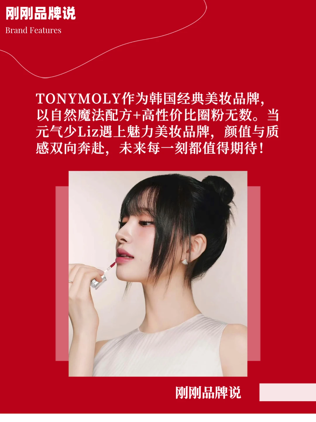 👏引言: 2月26日,Liz官宣成为TONYMOLY品牌代言人!刚宣完Matin Kim又拿下新代言,资源一路狂飙,表现力超稳,期待更多惊喜~ 📖关于 TONYMOLY: TONYMOLY,2006年创立于韩国首尔,是韩国代表性综合美妆品牌,以“美丽魔法森林”为理念,主打护肤与彩妆,产品畅销全球五十余国,凭借高性价比与创意设计深受喜爱。 TONYMOLY作为韩国经典美妆品牌,以自然魔法配方+高性价比圈粉无数。当元气少女Liz遇上魅力美妆品牌,颜值与质感双向奔赴,未来每一刻都值得期待!