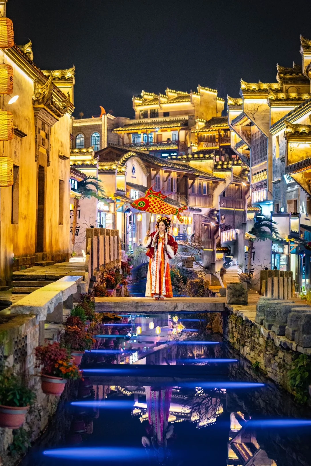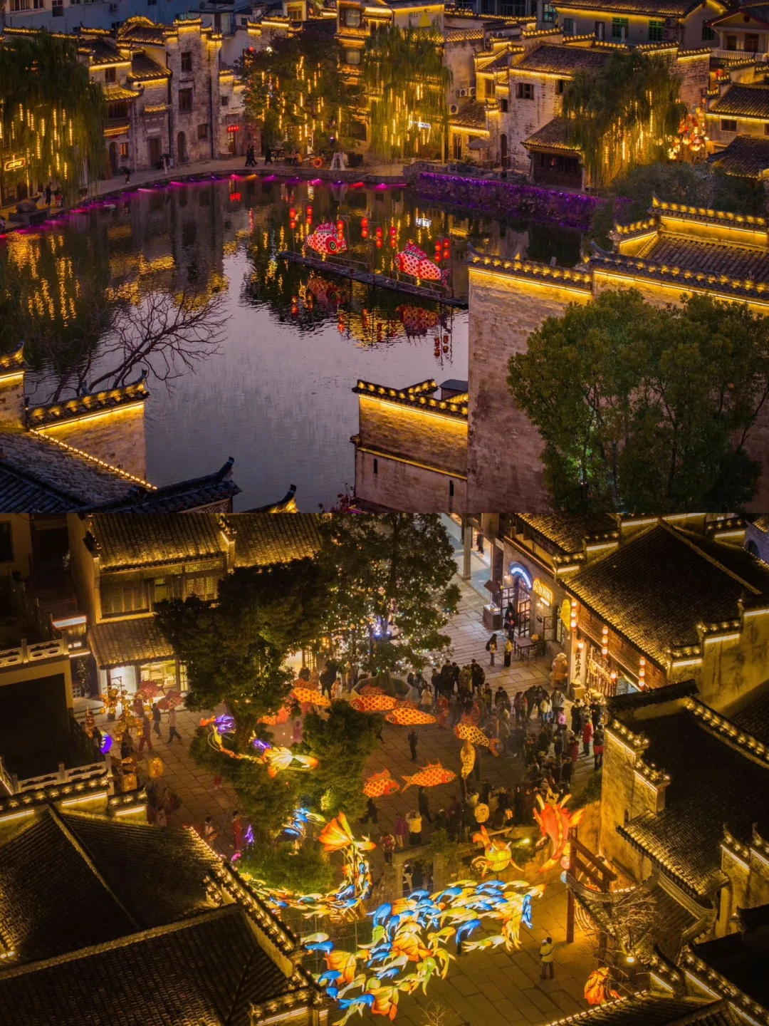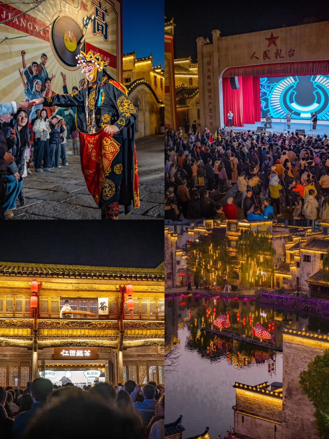 目前免费开放的徽文化老街,鱼灯巡游似星河漫舞,火艺表演震撼全场,地道小吃、非遗手作一站聚齐…全家老小都能玩尽兴!