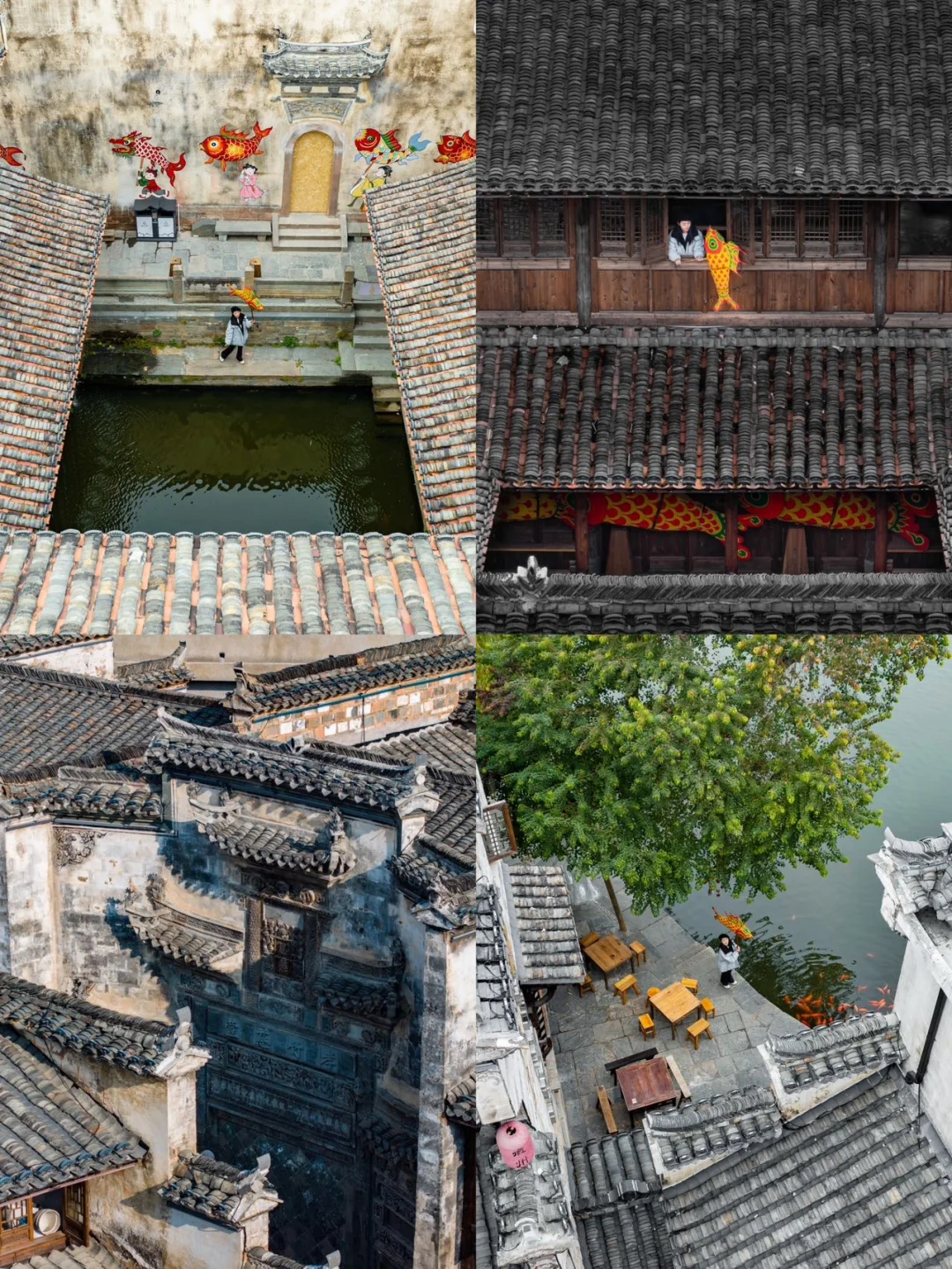 ▪️ 徽派建筑美学:婺源三雕(石雕木雕砖雕)有着“图必有意,意必吉祥”的含义,在这里马头墙、青石板路,随手一拍就是水墨画。