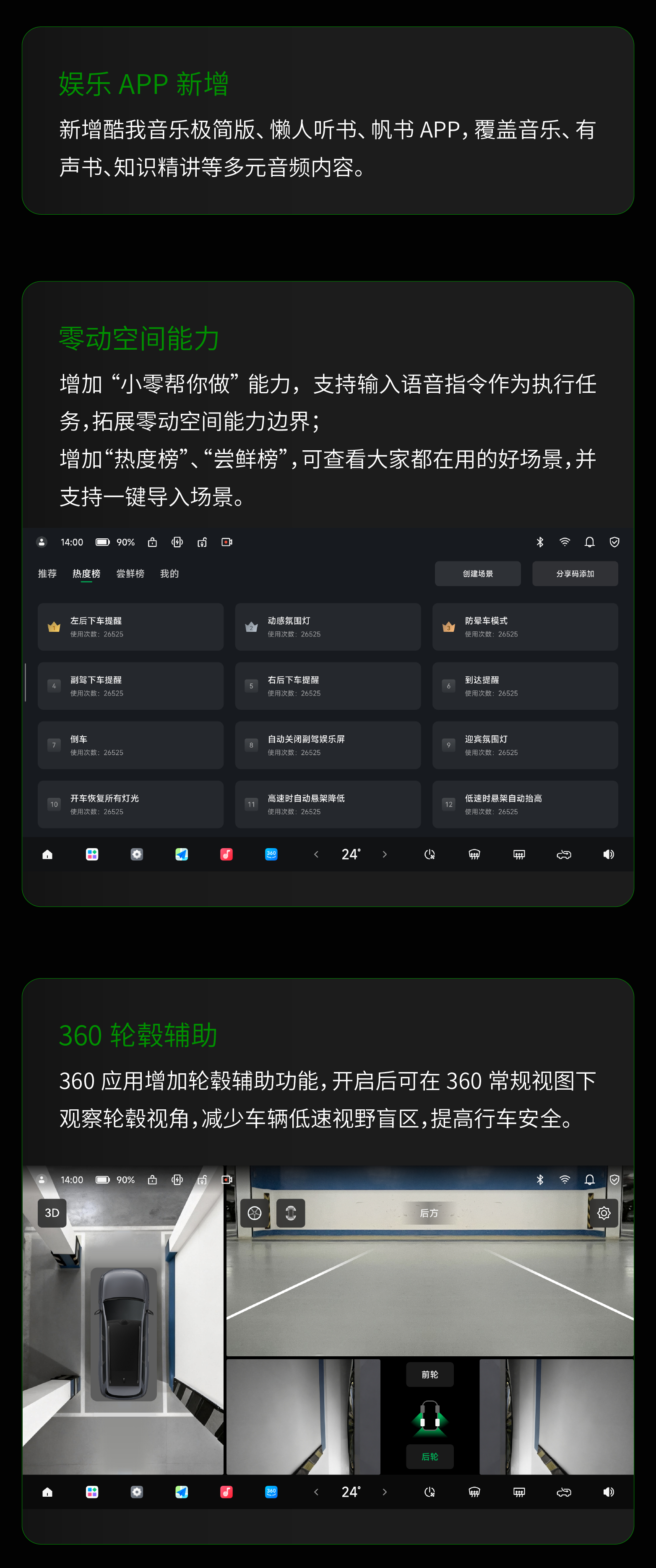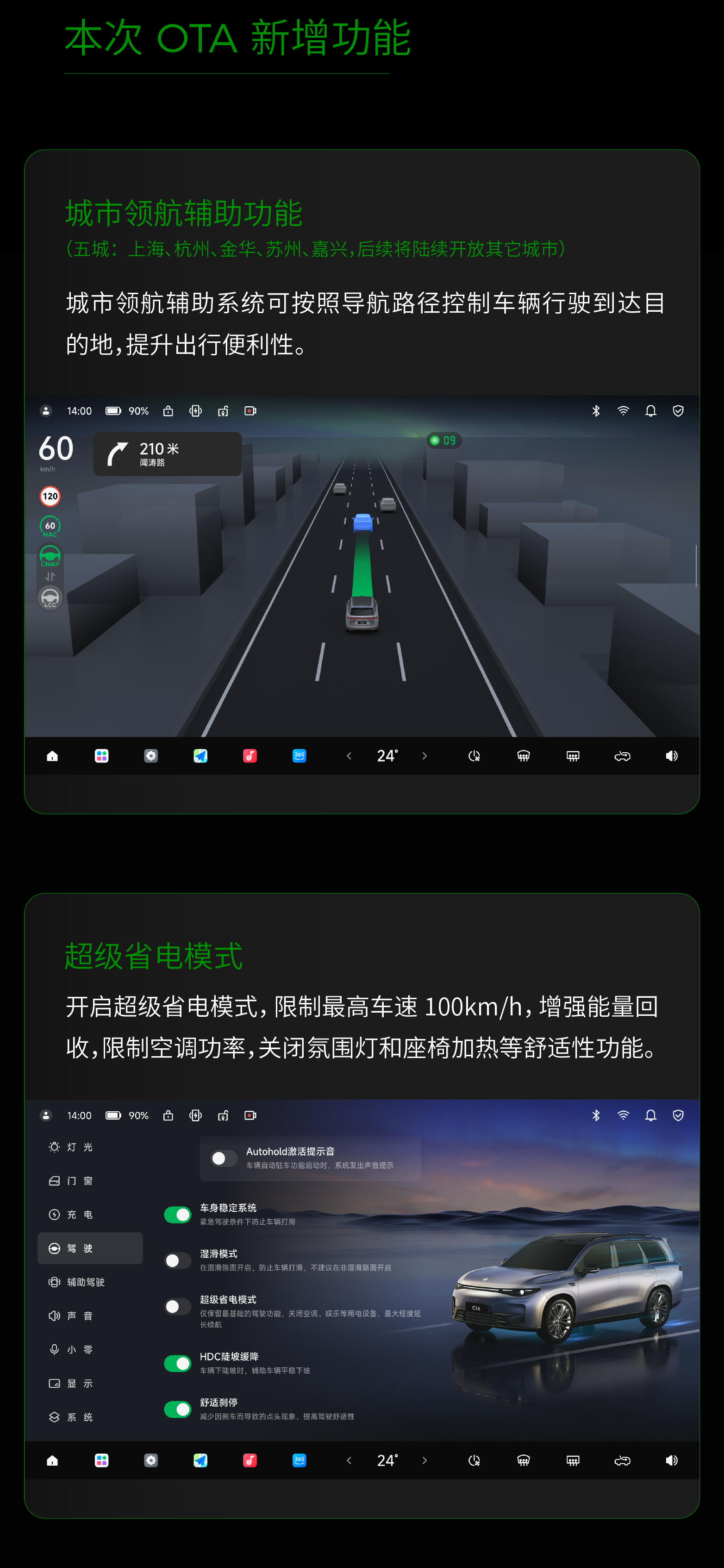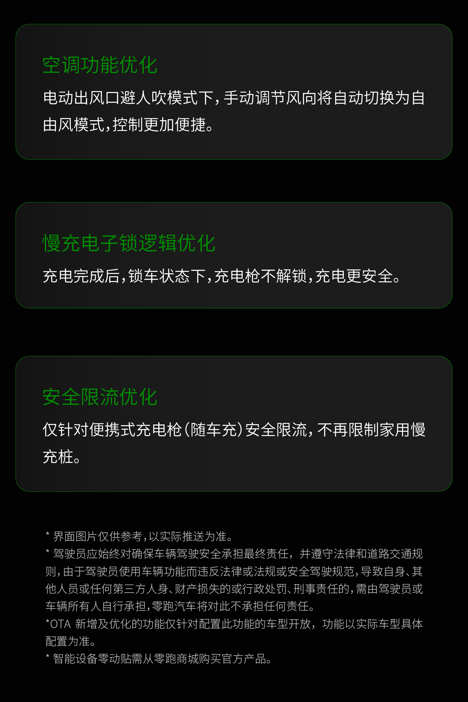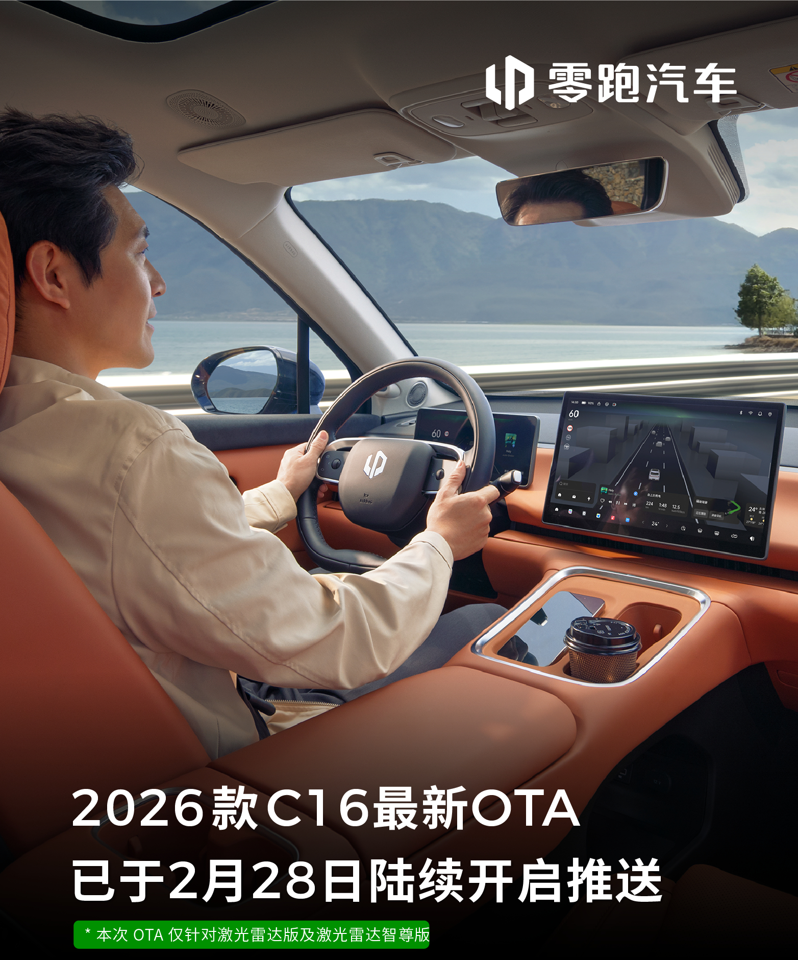 2026款C16车主看过来!本次OTA升级新增360轮毂辅助功能可减少低速行驶视野盲区,行车更安全✨更有城市领航辅助、超级省电模式、零动贴便捷控车等贴心功能每一项都超实用,用车体验up⬆️*本次OTA已于2月28日陆续开启推送,请耐心等待和关注车机提示零跑C16