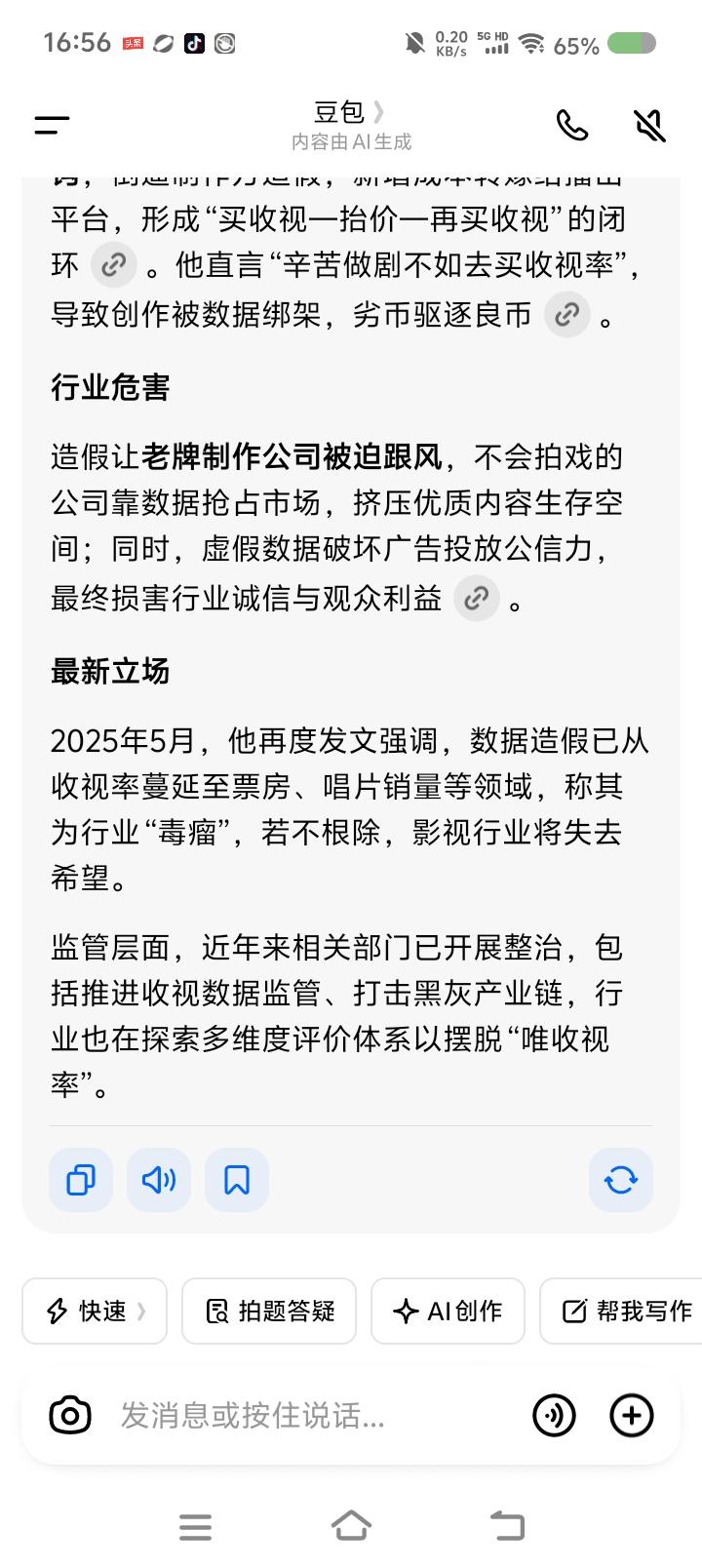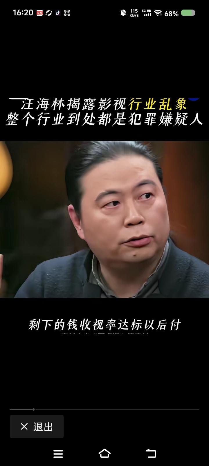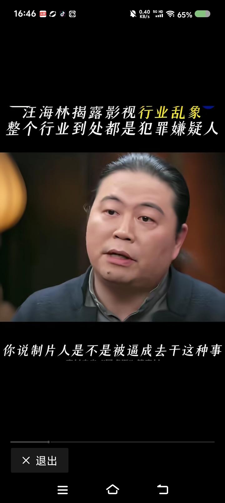 汪海林痛斥影视行业乱象—— 节目里,汪海林说:“我们一直说我们这个行业到处是犯罪嫌疑人。比如买片费用。你这戏卖了150万,电视剧先付50万,剩下的它说收视率达标了再付。这不是逼着制片人干这事么?”而且,汪海林说,有个朋友说收视率不好,面临撤档,他本来想安慰朋友,认为他没买收视率,坚守了底线,朋友说:“我买了,买错了。” 点评: 不是很明白。 收视率还能造假? 豆大叔显示了相关信息,未必是节目中那次访谈内容。 反正这个行业看起来很热闹,每年都有这个奖那个奖,这个颁奖晚会那个什么之夜,但你细细看,很少有让你特别喜欢的非常独特的作品,至多算尚可。