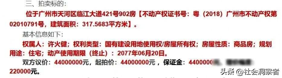 许家资产链上拆,天价豪宅暗流涌,谁在幕后操盘? 广州天河区一套临江的豪宅被法院挂出来卖,317平方米最后卖了五千零一十六万,比底价多出六百多万,买主姓苏,大家注意的其实是原房主许火健,这名字听着有点熟,一查才知道他是许家印的侄子。 这些年恒大资金链出了问题,许家印自己也被限制高消费,他亲戚名下的资产陆续被法院拍卖,这套豪宅是湛江法院处理的,拍卖当天网上竞价持续了十多个小时,不少人参与抢拍,许火健现在还挂着广州雅旭装饰公司股东的名头,占两成股份,可这家公司这几年官司不断,天眼查上显示有七百多起诉讼,去年光是强制执行的债务就接近两百万。 说来也怪,这房子能卖上价,说明大家还是认地段,可许家那堆债,光卖房子哪够填,恒大出事之后,许家印的家底早被翻了个底朝天,连侄子的财产都不放过,买下这栋豪宅的苏姓买家,到底是谁,是自住还是图个投资,没人说得清,这场拍卖,不过是债务风波里的一小步罢了。 法院拍卖记录里,许火健名下的其他资产也一样在慢慢卖,恒大那堆烂账到底怎么算,连亲戚的财产都被牵进来抵债,能还清多少真不好说,这栋豪宅的交易可能只是露出水面的一角,底下还有更多事没人说。
