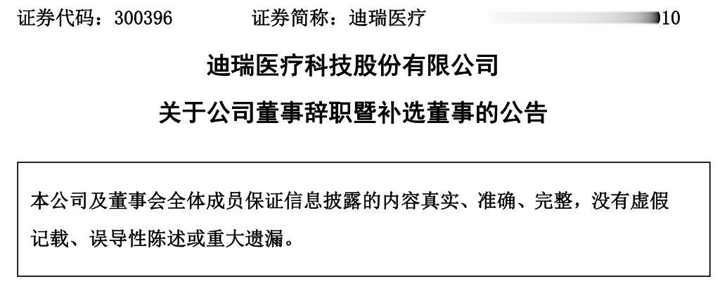 2月27日,迪瑞医疗发布《关于公司董事辞职暨补选董事的公告》(简称《公告》)。