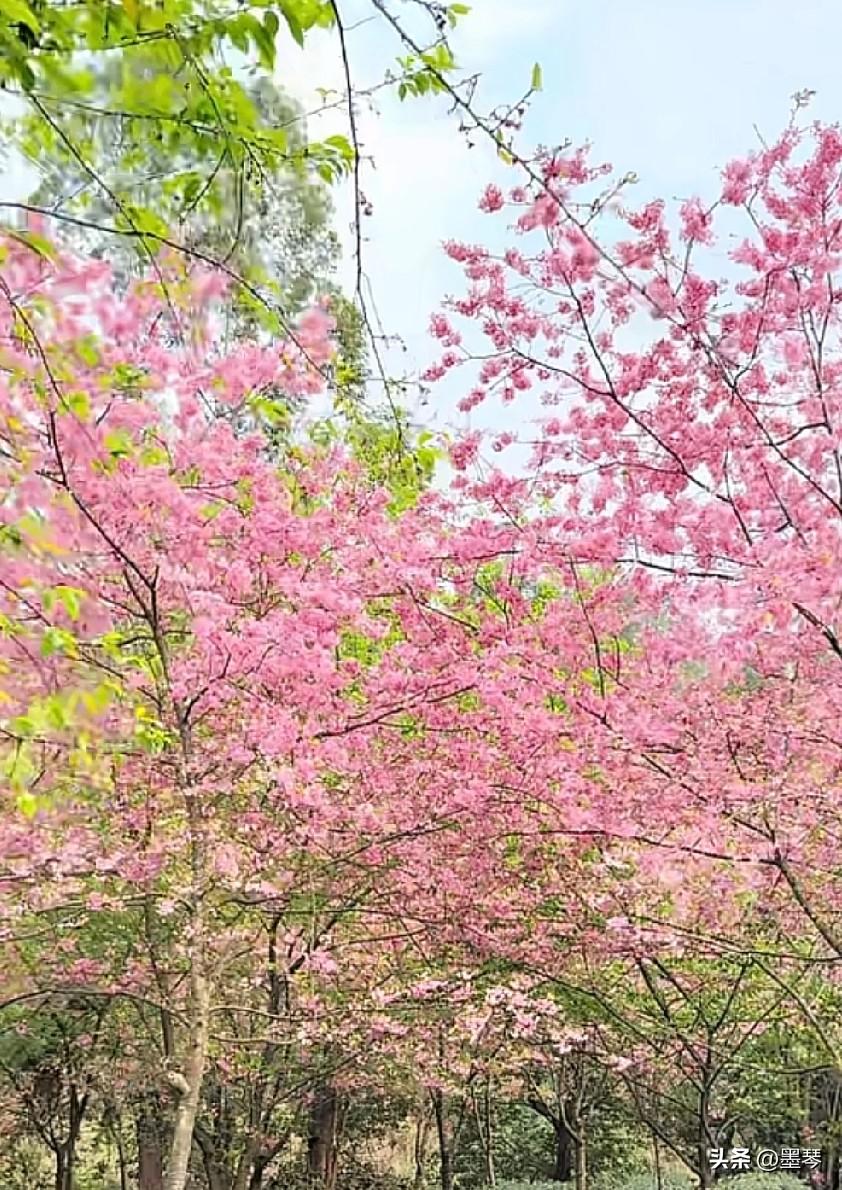 川南的人忽略,这是给北方的朋友看的,宜宾金秋湖的樱花开了,开出了一种“乱花渐欲迷