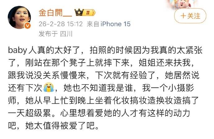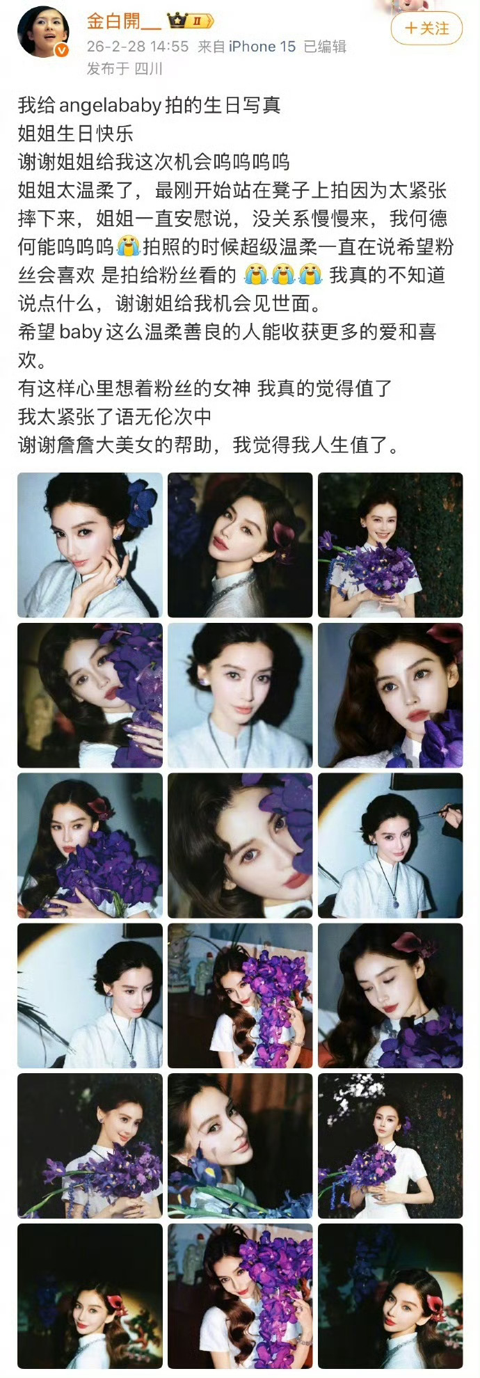 金白开拍的Angelababy生日图好美!还发文说baby人超级好,宝藏女孩👧