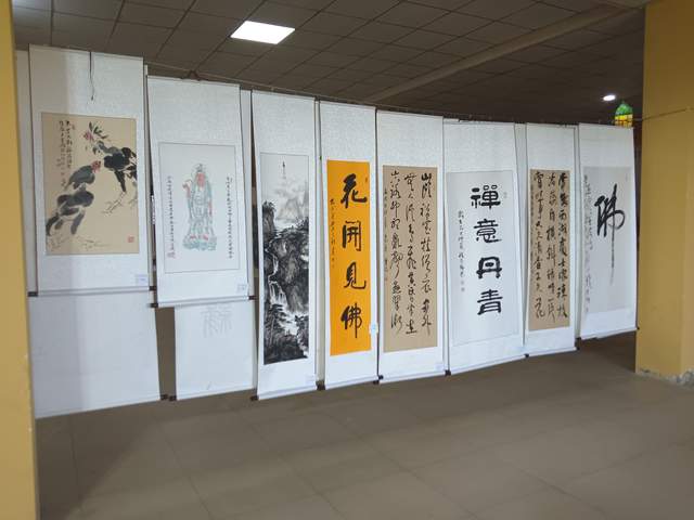 本次展览共展出书画作品100多幅,涵盖书法、国画、水彩等多种艺术形式。书法作品中,既有庄严大气的楷书,书写着佛教经典经文;也有飘逸洒脱的行草,展现出书法家对佛法的独特感悟。绘画作品题材丰富,或描绘庄严神圣的佛菩萨造像,或展现清幽静谧的寺庙风光,每一幅作品都蕴含着创作者对佛教教义的深刻理解与虔诚敬意。