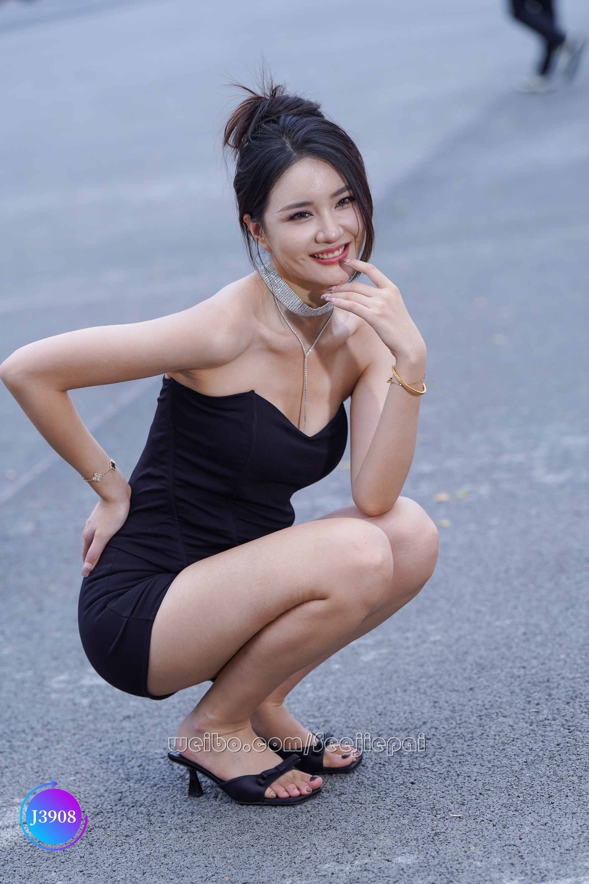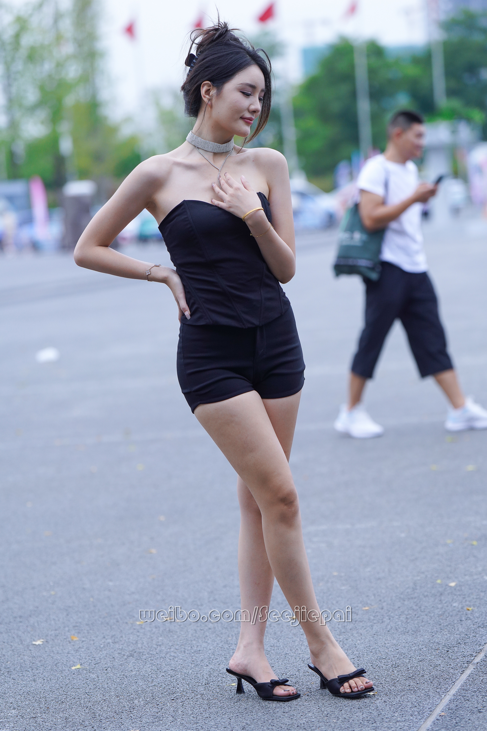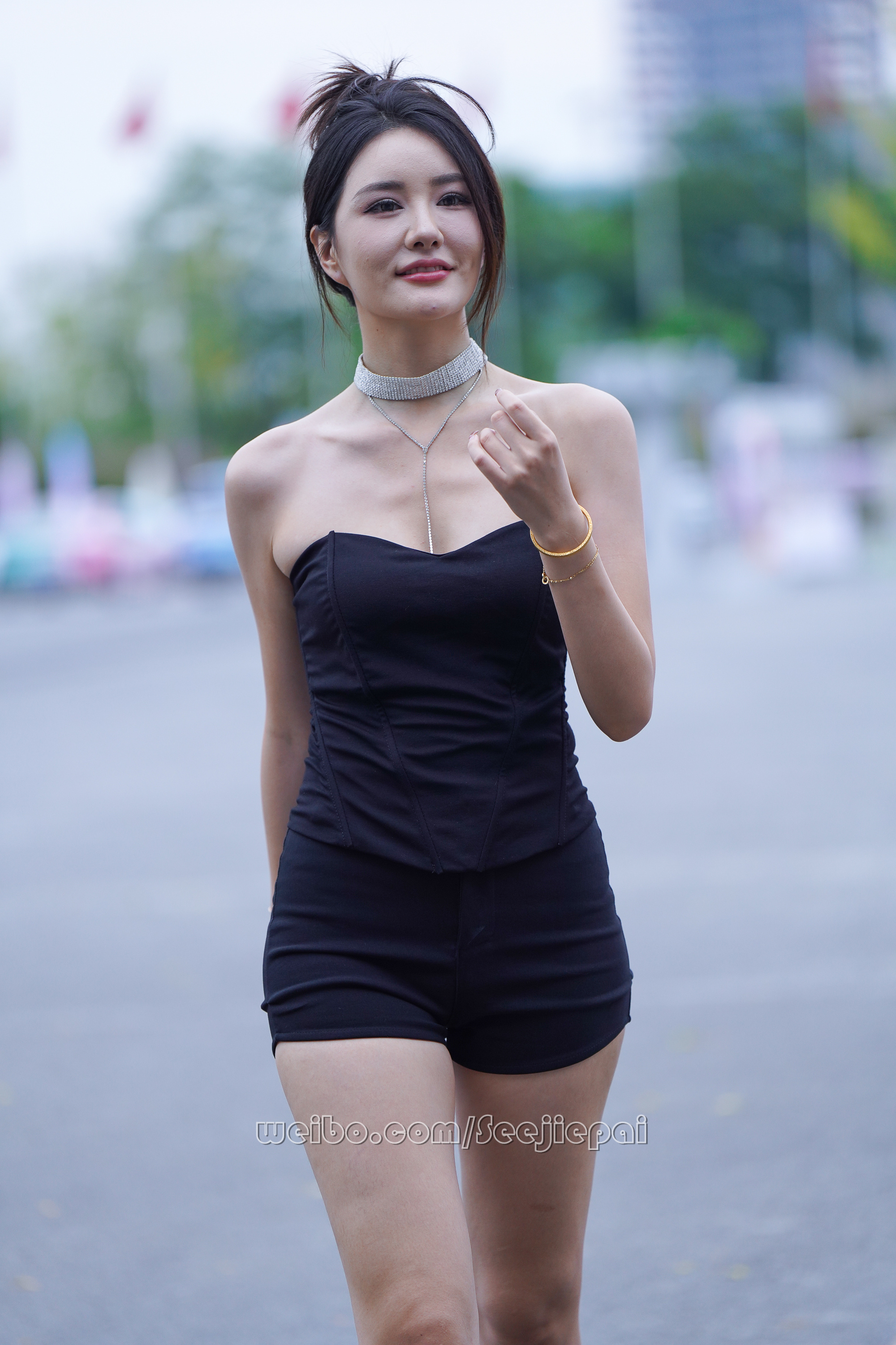 18岁女大学生,尖下巴,三庭五眼比例均衡,棕色简约盘发。身材娇小,细腻陶瓷水嫩肌