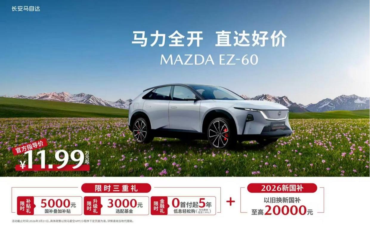 车盟快讯:长安马自达EZ-60首次智能升级来啦!裸眼3D-HUD整了新活,3D立牌导航+地面光毯引路,看路不挪眼超安全。自定义泊车随便划位置,非标准车位也能轻松停,车机还新更12款实用APP。车机显示、音质这些细节也全优化了,运动版已到店,还有三重新春购车福利,买车用车都超省心!