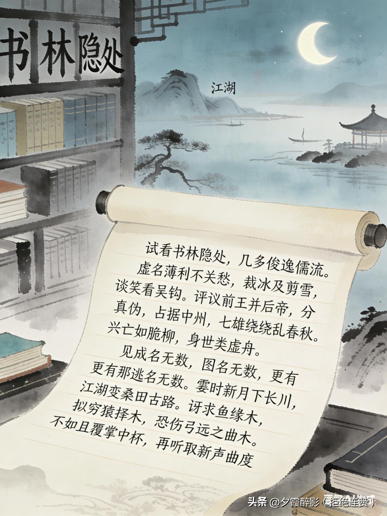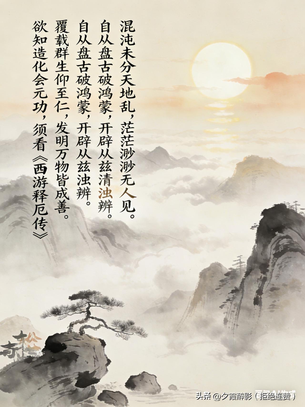 中国四大名著开篇诗词,首首封神,道尽世间百态 四大名著的开篇诗词,堪称神来之笔!寥寥数语定调全书,藏着历史兴衰、人生百味,读来满口生香,越品越有深意! 📜《三国演义》 滚滚长江东逝水,浪花淘尽英雄。 是非成败转头空。 青山依旧在,几度夕阳红。 白发渔樵江渚上,惯看秋月春风。 一壶浊酒喜相逢。 古今多少事,都付笑谈中。 一首《临江仙》,道尽英雄起落、历史沧桑,淡然通透,千古绝唱。 📜《红楼梦》 满纸荒唐言,一把辛酸泪。 都云作者痴,谁解其中味? 二十字绝句,凝尽半生悲喜,豪门兴衰、儿女情长,皆在这“荒唐”与“辛酸”之中。 📜《水浒传》 试看书林隐处,几多俊逸儒流。 虚名薄利不关愁,裁冰及剪雪,谈笑看吴钩。 评议前王并后帝,分真伪占据中州,七雄扰扰乱春秋。 兴亡如脆柳,身世类虚舟。 叹功名浮沉,感世事无常,为梁山好汉的聚散悲欢,埋下苍凉伏笔。 📜《西游记》 混沌未分天地乱,茫茫渺渺无人见。 自从盘古破鸿蒙,开辟从兹清浊辨。 覆载群生仰至仁,发明万物皆成善。 欲知造化会元功,须看西游释厄传。 从开天辟地落笔,格局宏大,点出取经释厄、探索造化的全书主旨。 四首诗词,四种意境,尽揽古典文学之美!你最喜欢哪一首?评论区聊聊~ 四大名著 经典诗词 传统文化 古典文学