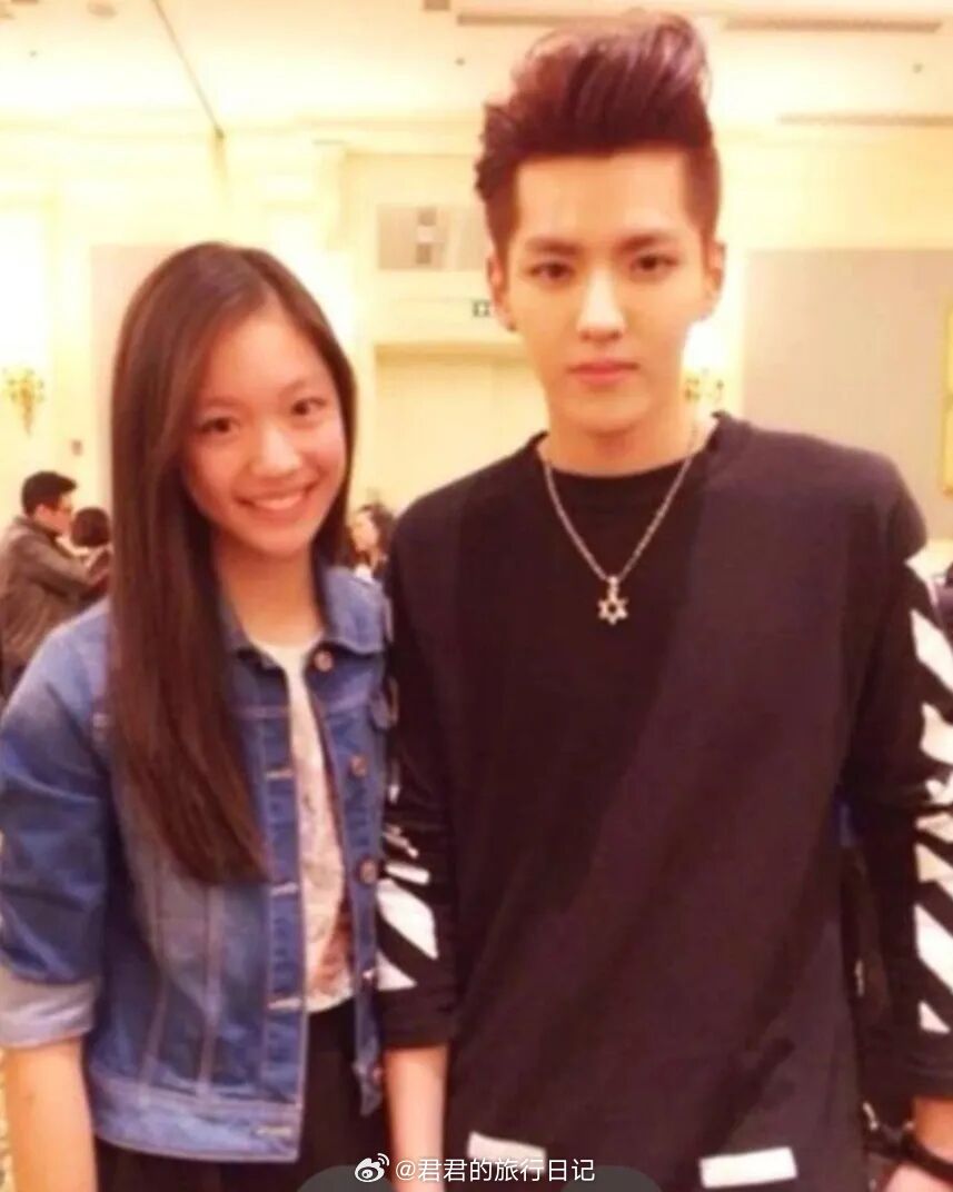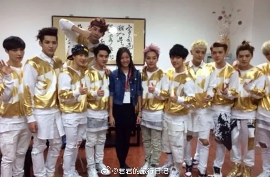 当年,作为千金大小姐,美合追星也有一些特殊待遇。EXO开演唱会,13岁的美合直接去后台,站在C位合影(图2)