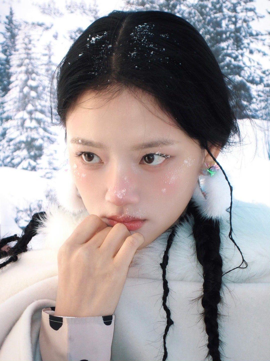 任敏冻红妆金鹤龙给任敏化的瑞雪冻红妆雪落眉梢,红染鼻尖,任敏的瑞雪冻红妆清透又破碎,像冬日里误入人间的雪精灵,每一帧都美得让人心颤,金鹤龙的妆造审美真的绝了!