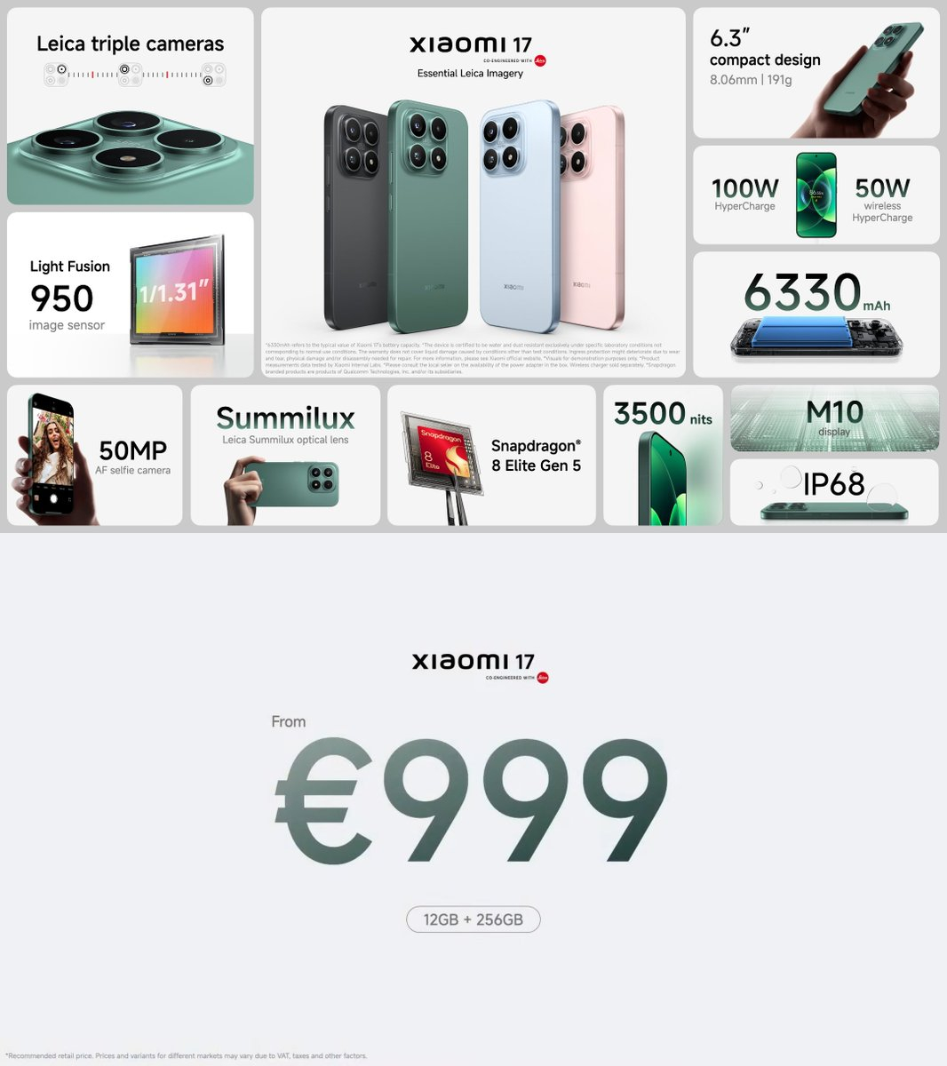 小米发布会 海外版本售价出炉小米17:999欧≈8100元小米17 Ultra:1499欧≈12140元小米17 Ultra徕卡版:1999欧≈16170元