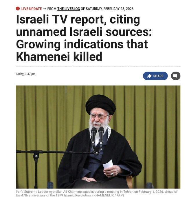 有报道称哈梅内伊去世。 以色列电视台援引匿名消息人士的话称,越来越多的迹象表明这位阿亚图拉已被击毙。 媒体报道还称,伊朗国防部长和伊斯兰革命卫队司令在以色列的空袭中丧生。 目前尚未有官方消息证实此事。