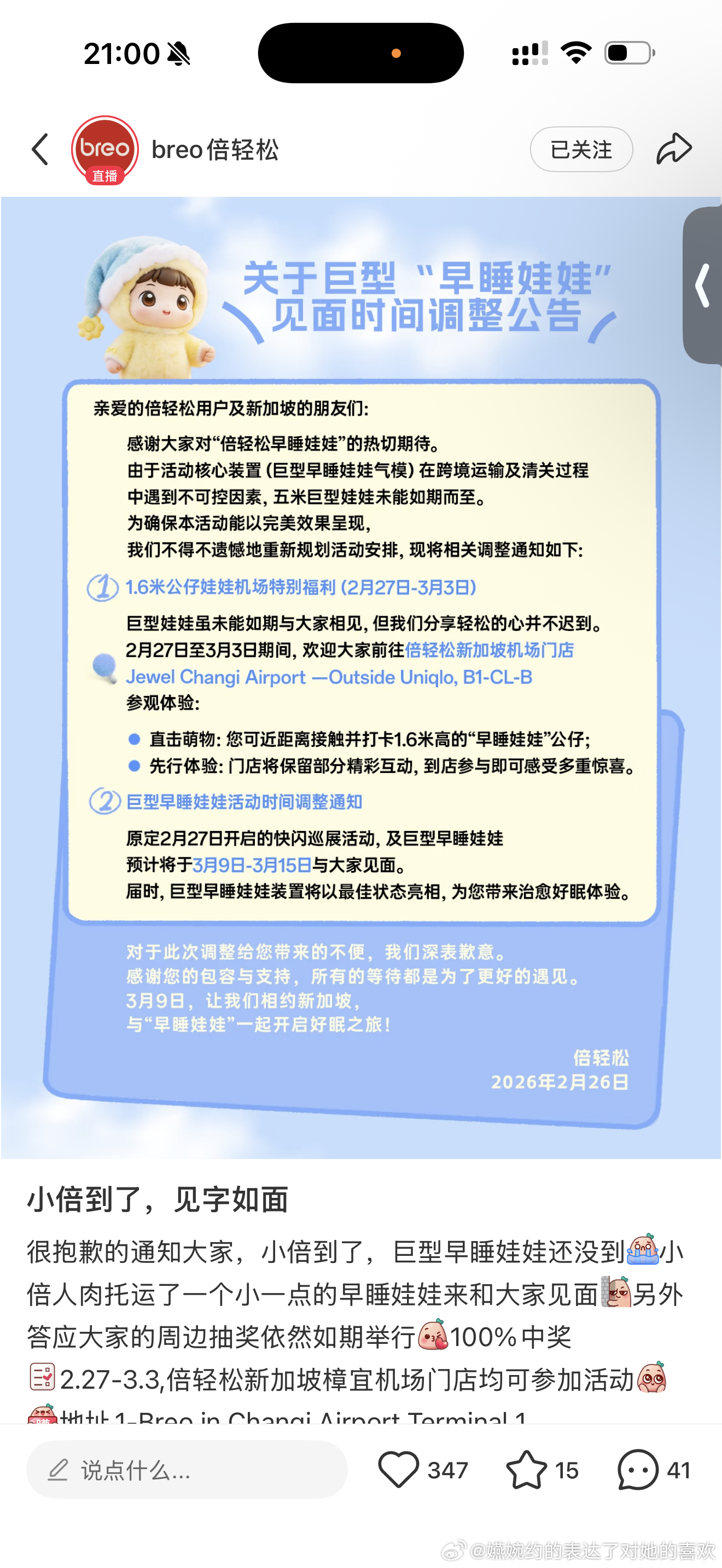 这个倍轻松真的很用心吧,去新加坡大满贯给孙颖莎应援还去跟比赛,我前几天还在深圳机场遇到倍轻松的负责人了,在联系把活动需要用到的布置的东西和周边运去新加坡,因为过年的缘故清关缘故5m大娃娃要晚一些才可以运过去