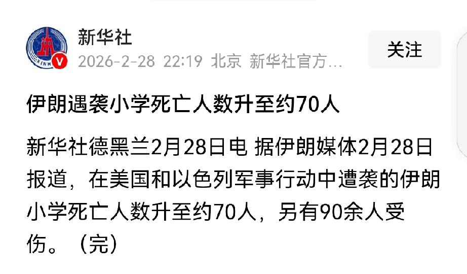 2月28日,美国和以色列联合对伊朗发动军事行动。美国称行动代号为“史诗怒火”,以色列称之为“咆哮的狮子”。对外称对伊朗的总统府、核设施为目标进行打击。但是,这次袭击并没有放过平民。 据报道,伊朗南部米纳卜市一所女子学校遭到了袭击,现场惨不忍睹,成了一片废墟。此时,已没有了孩子们的欢声笑语,到处都是受伤的孩子们痛苦呻吟声。也见不到孩子们的在校园活泼好动的身影,只有躺在地上冰冷的尸体。当地民众自发的在废墟里,搜寻幸存的孩子。 初步统计造成51人死亡,另有60人受伤。进一步发现,伤亡人数继续上升。目前,死亡人数已上升到70人,受伤90人。 以色列称这次行动为“咆哮的狮子”,形象的道出了他们无差别杀人的兽行。多行不义必自毙,这种兽行必然不会有好结果。 伊朗小学遇袭 死亡人数升至约70人晒图笔记大赛